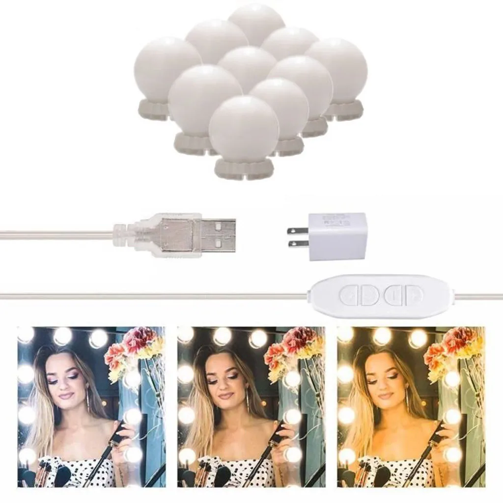 3 цветовых режима и лампочки с регулировкой силы света: умный переключатель включения/выключения и затемнения для регулировки яркости в любое время в соответствии с вашими потребностями. 3 светильник с цветными вариантами для удовлетворения ваших потребностей в различных ситуациях. Косметический зеркальный светильник s можно наносить на макияж, заполняющий светильник, украшение и съемку.