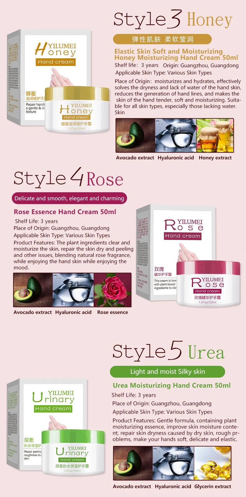 Форма: крем Использование: ручная Ингредиент: экстракт авокадо/Гиалуроновая кислота/эссенция розы Вес нетто: 50 г Характеристики: Антибликовое, увлажняющее, питательное, Отбеливающее Сертификация: GMP, MSDS, SGS, GDFDA Возрастная группа: Взрослые Место происхождения: Гуандун, Китайский бренд: Yilumei Название продукта: крем для рук Тип: все типы кожи s Объем: 50 г Цвет: белый Срок годности: 3 года Основная функция: питает и отбеливает