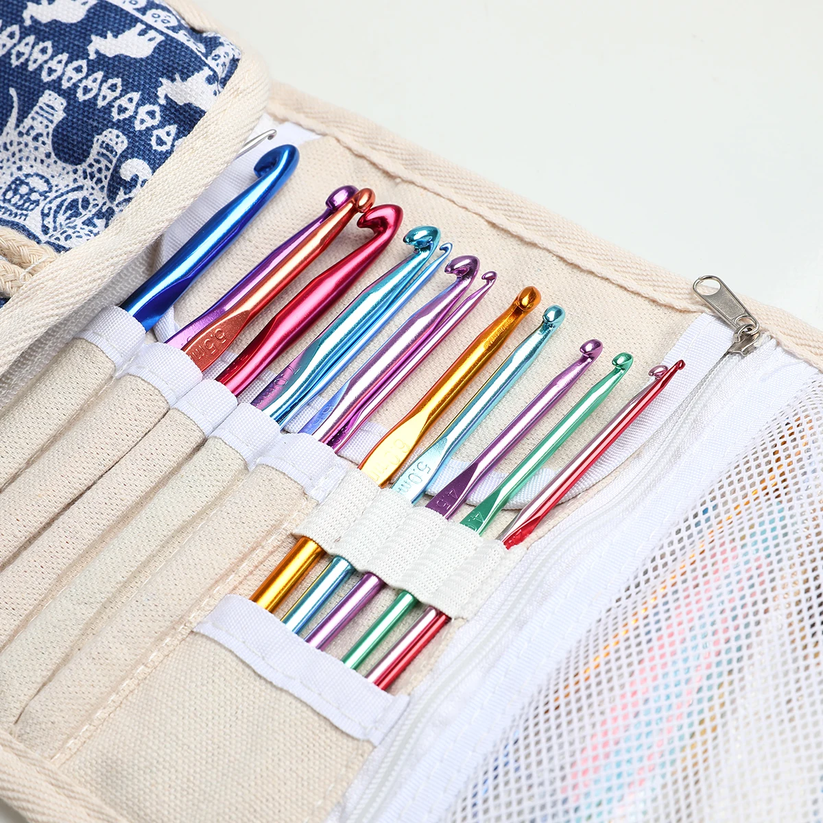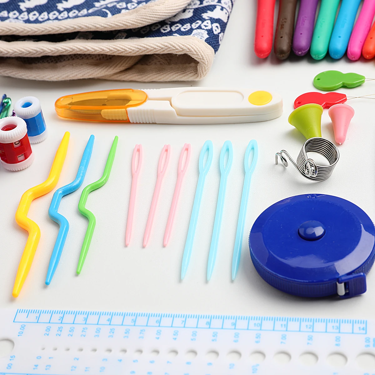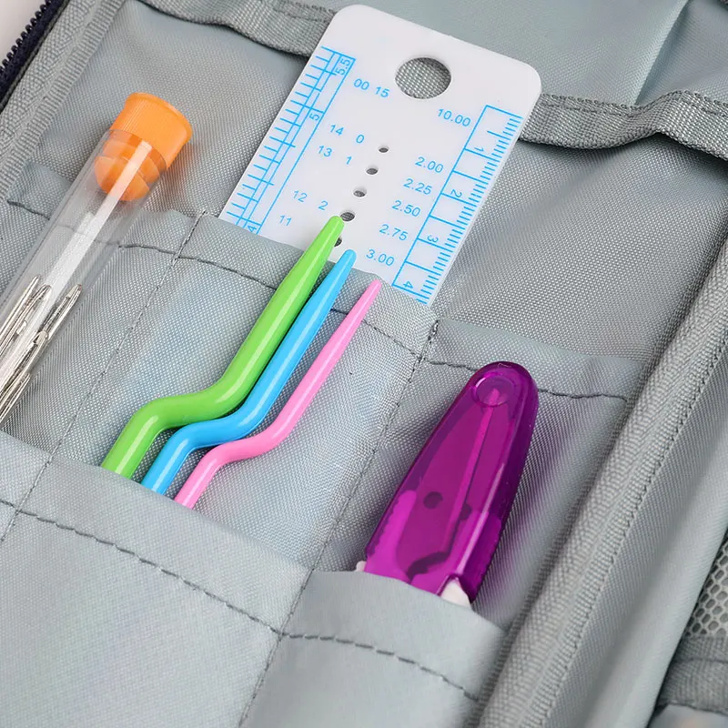 Посылка включает в себя: 12x2,0 мм/2,5 мм/3,0 мм/3,5 мм/4,0 мм/4,5 мм/5,0 мм/5,5 мм/6,0 мм/7,0 мм/8,0 мм 5x0,5 мм/0,7 мм/1,0 мм/1,50 мм/1,7 мм 10 x Stich Makers 1 x Ножницы 6 x пластиковые швейные иглы/спицы для пряжи 3 x держатели для стежков 4 x иглы точечные протекторы 2 х алюминиевых держателя 1 х измерительная лента 1 x чехол