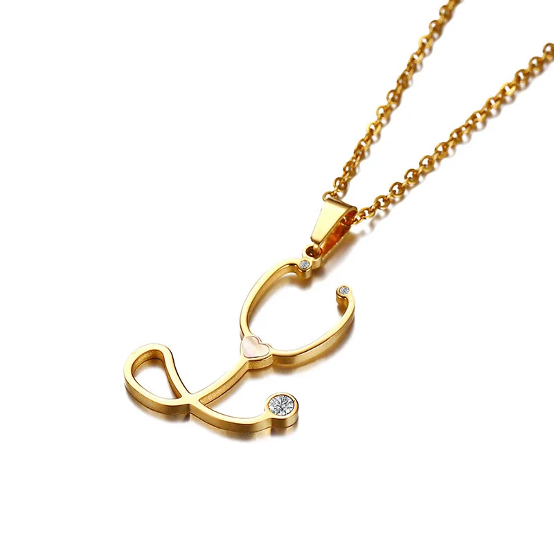 Подвеска-стетоскоп, ожерелье медсестры, Женский кубический цирконий, золотой цвет, уникальный корпус из нержавеющей стали, очаровательное колье