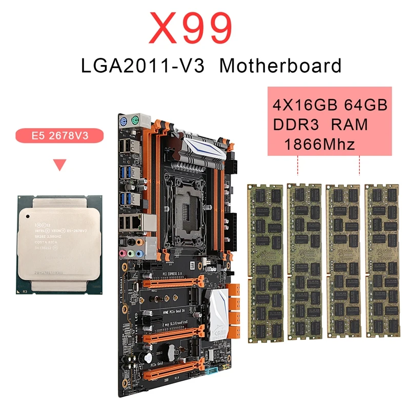 1 X X99 LGA2011-V3 материнская плата (с кабелем SATA и задней плоскостью)