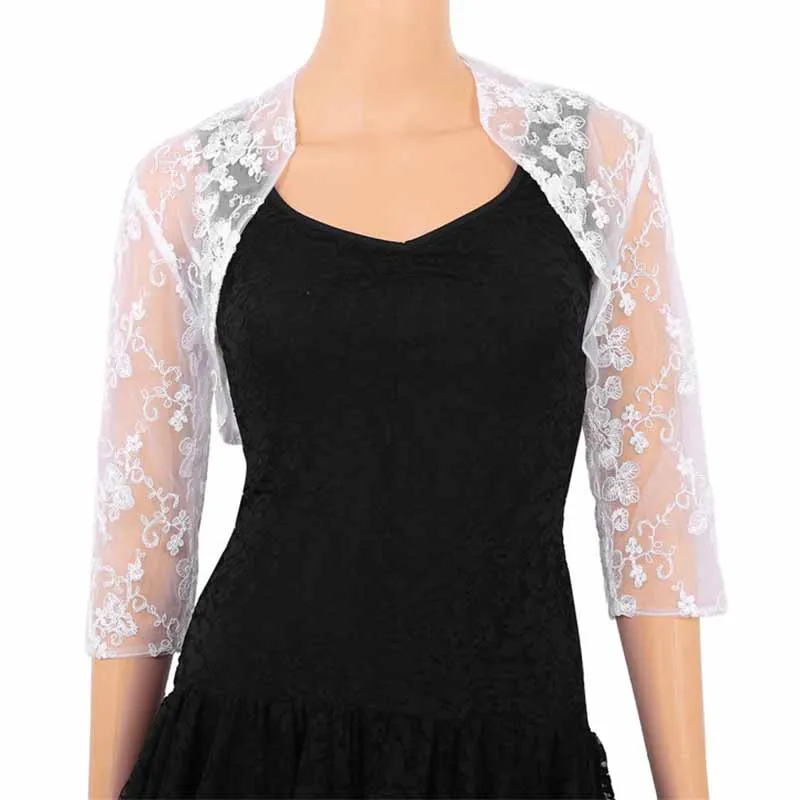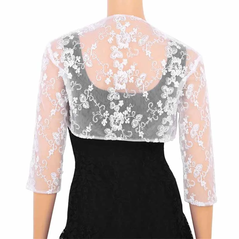 Элегантный Для женщин женские 3/4 с длинным рукавом открытой передней свадебные цветочные кружева жакет-болеро для свадьбы куртка Выходные туфли на выпускной Вечеринка платья шаль
