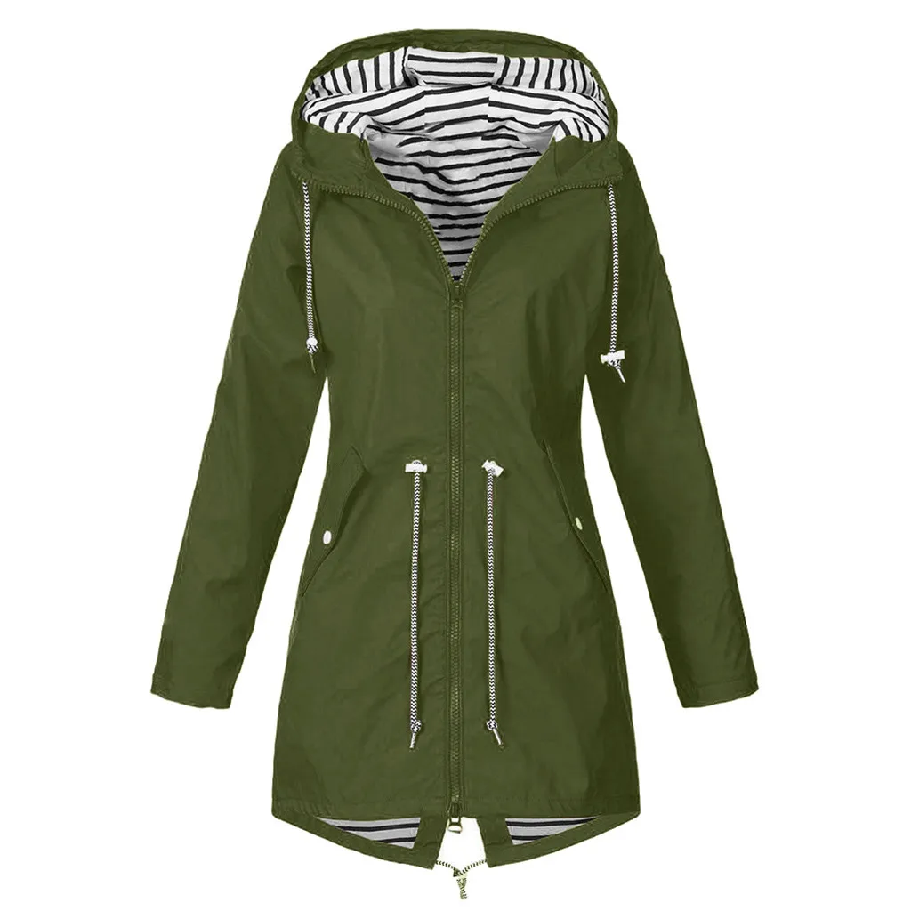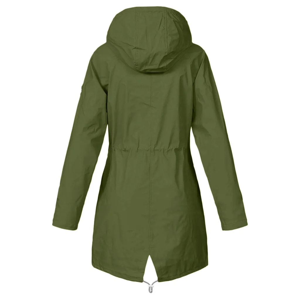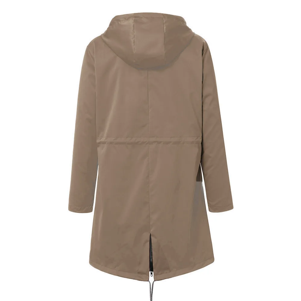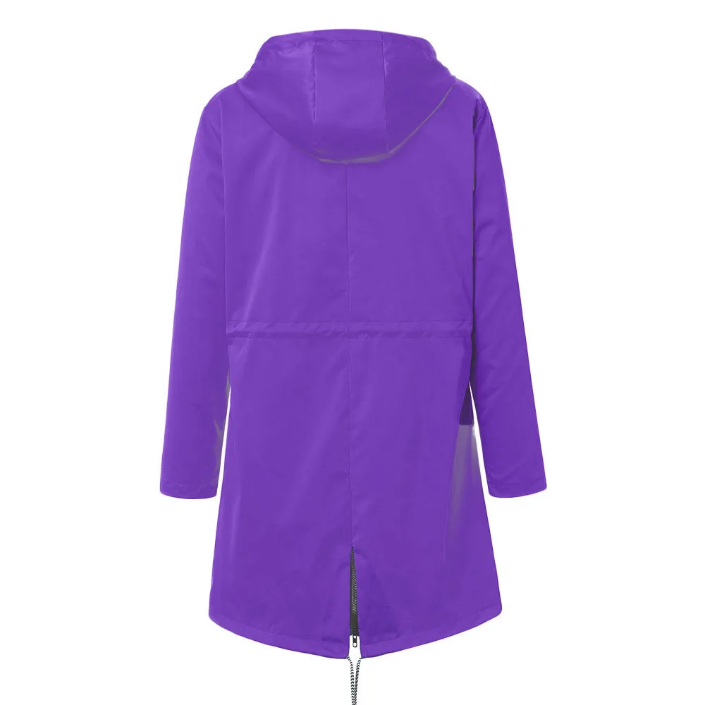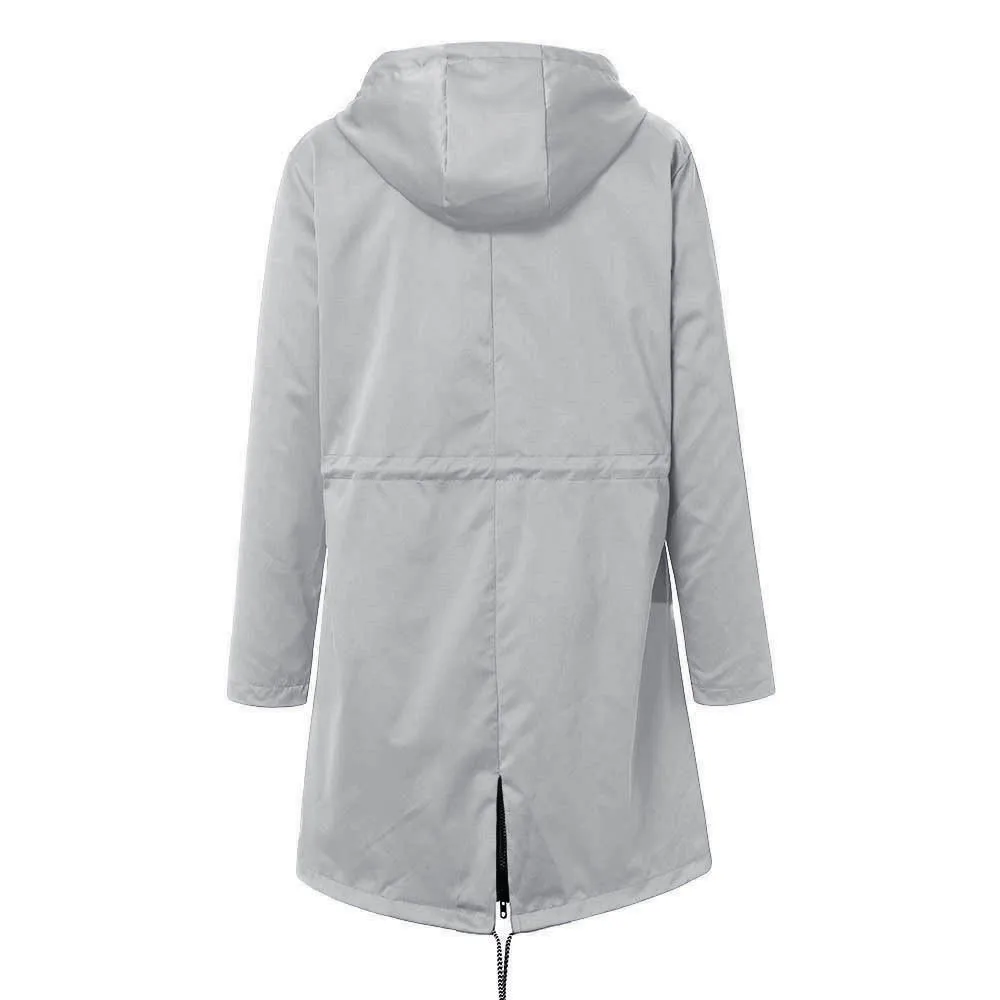 Женская однотонная дождевик для улицы размера плюс, водонепроницаемое ветрозащитное Свободное пальто с капюшоном