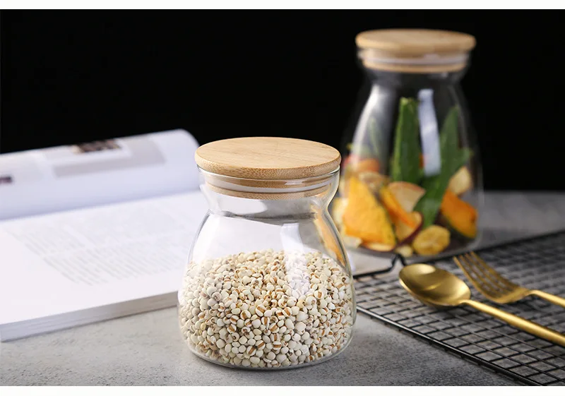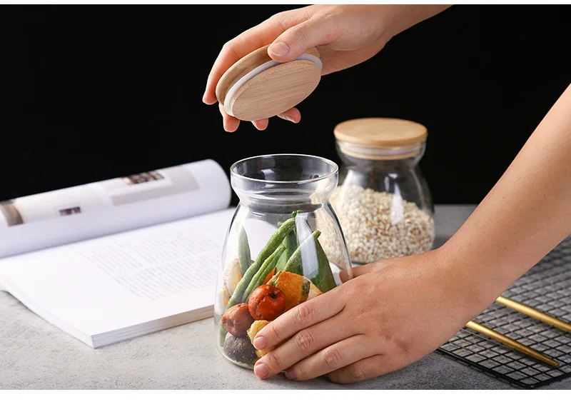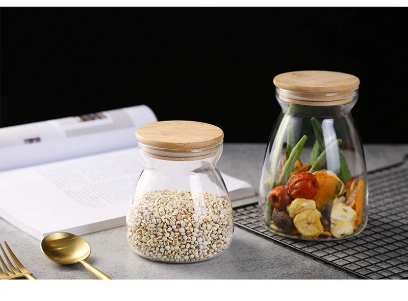 Прозрачное высокоборосиликатное уплотнение стекла закуски Твердые крупы чай конфеты, продукты кофейные бобы керамические банки для хранения с деревянная крышка