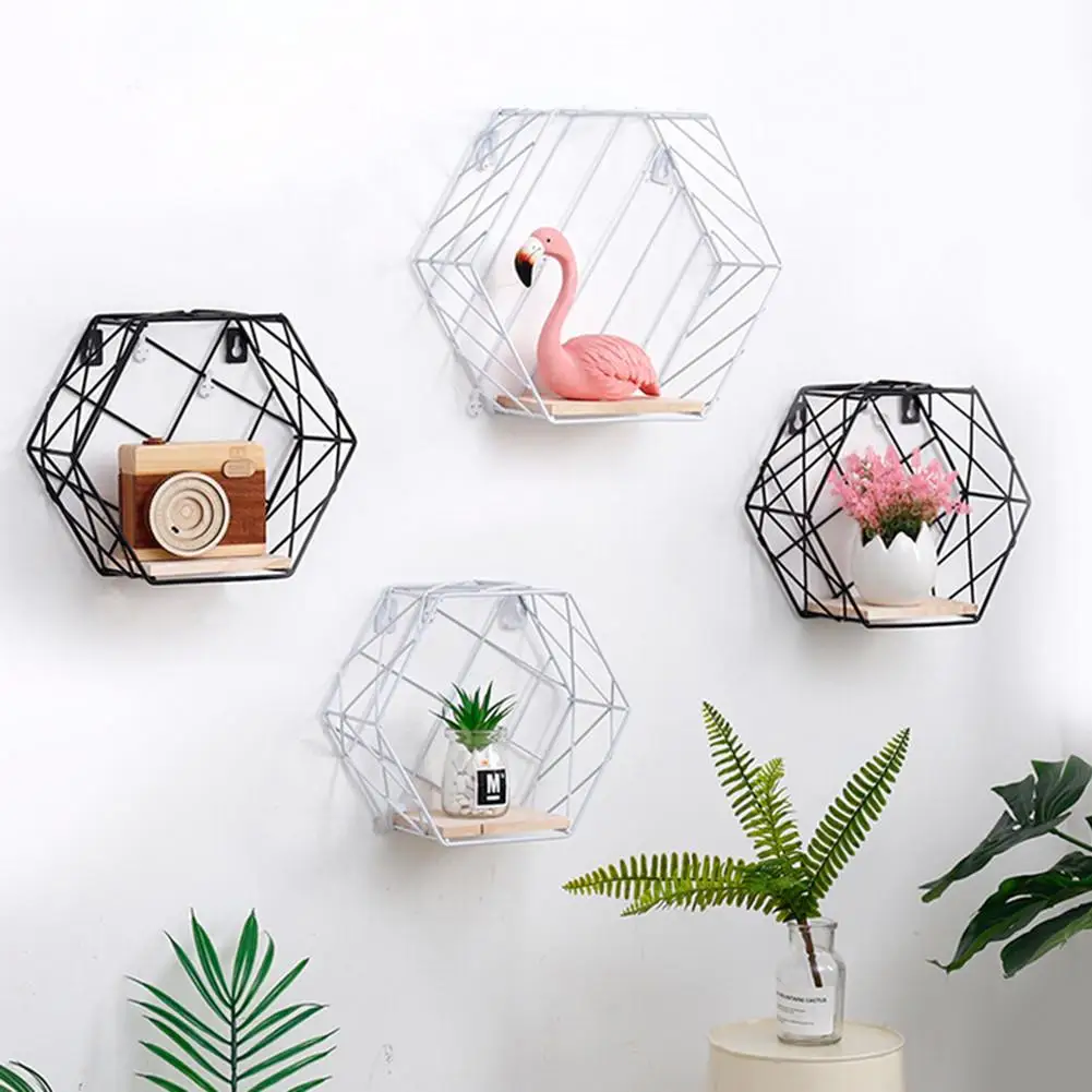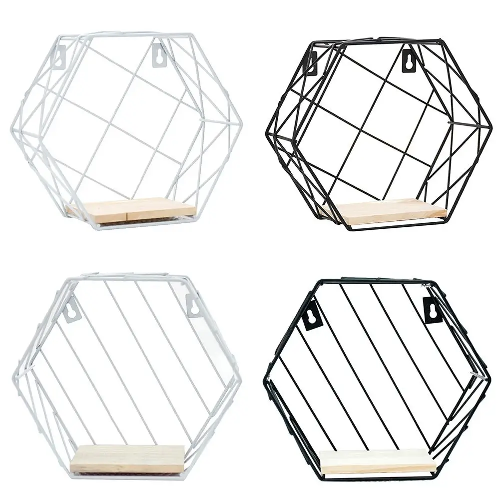 Железная шестиугольная сетчатая полка для хранения на стене комбинированная