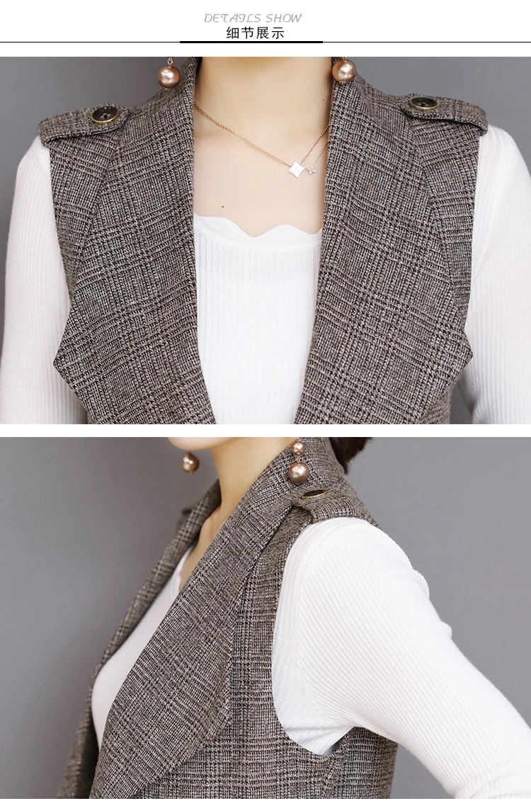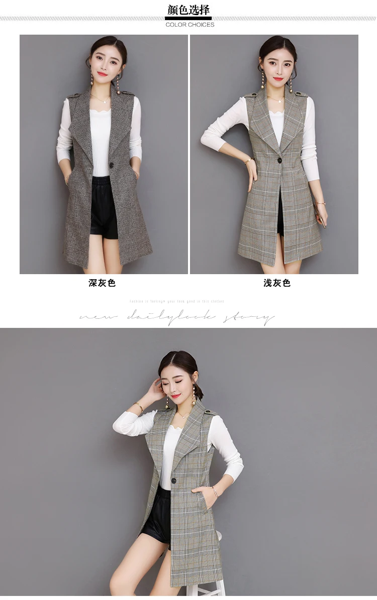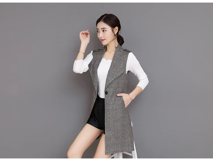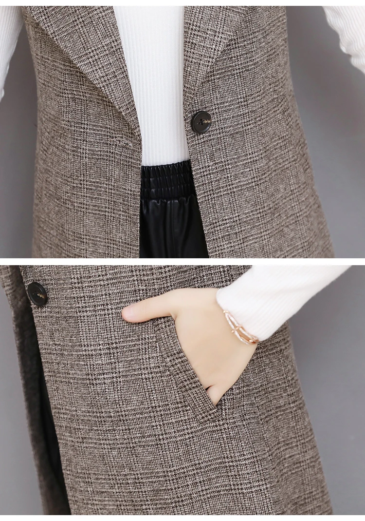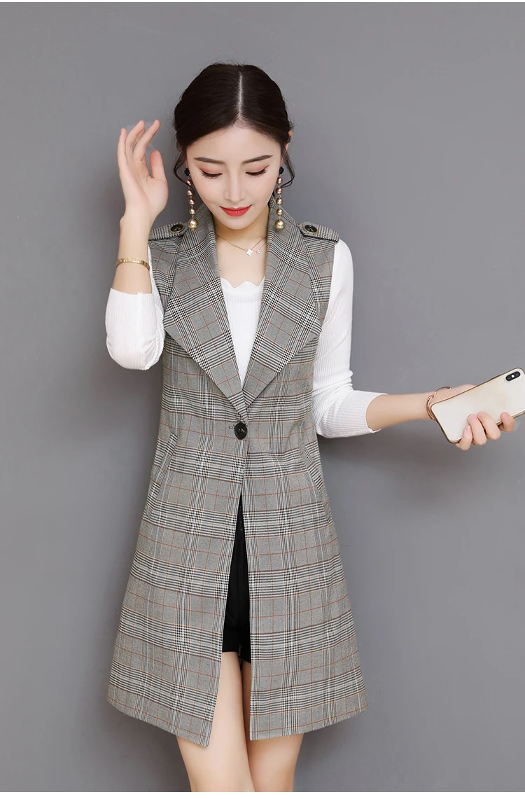 Spring Long Blazer Vest Women Office Slim Single Button Plaid Women Suit Vest Fashion Elegant Waistcoat Sleeveless Jacket DV514