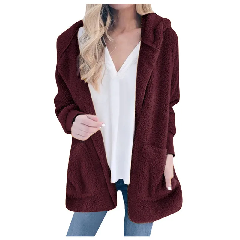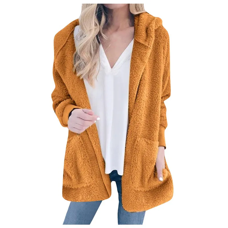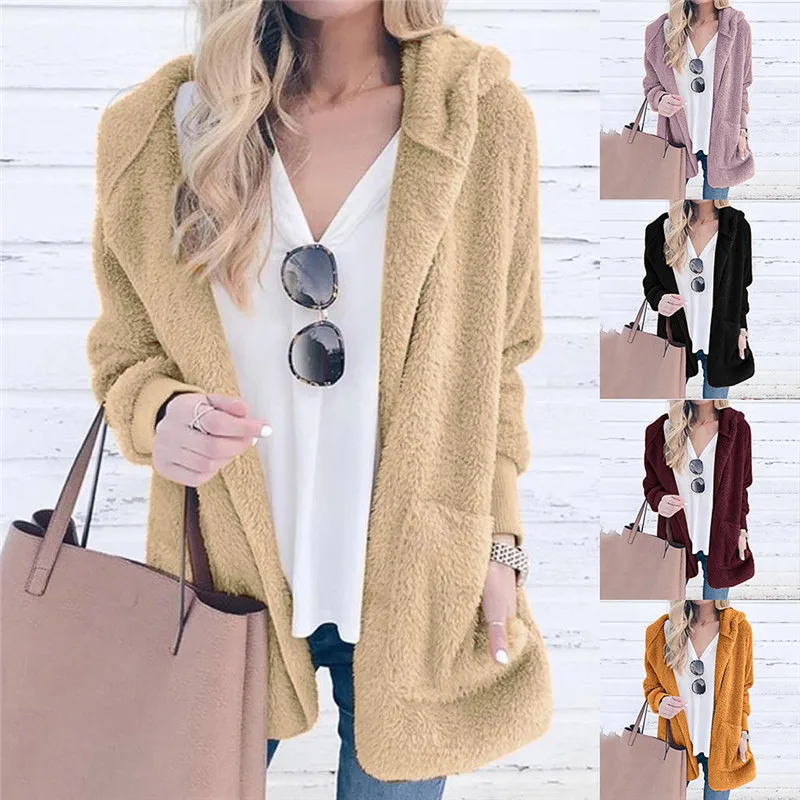 Женское пальто осень-зима, новый однотонный плюшевый кардиган с капюшоном, кардиган, пальто, свитер, женский свитер