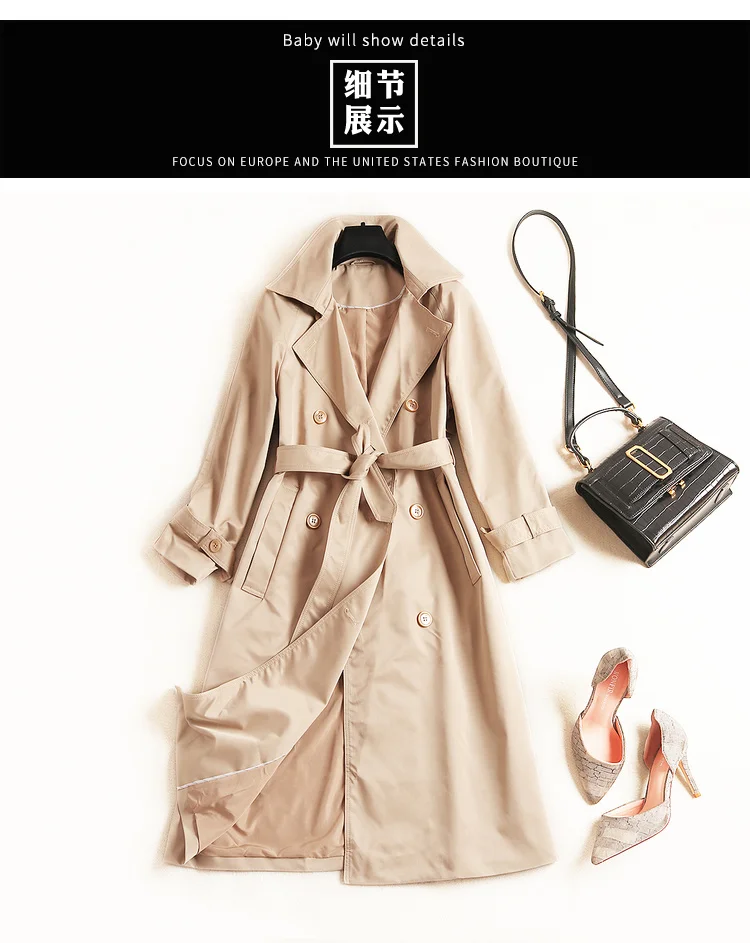 LVENZSE Весна Осень Новый Повседневный женский плащ хаки пальто Длинная Верхняя одежда свободная одежда для леди с поясом пальто для женщин