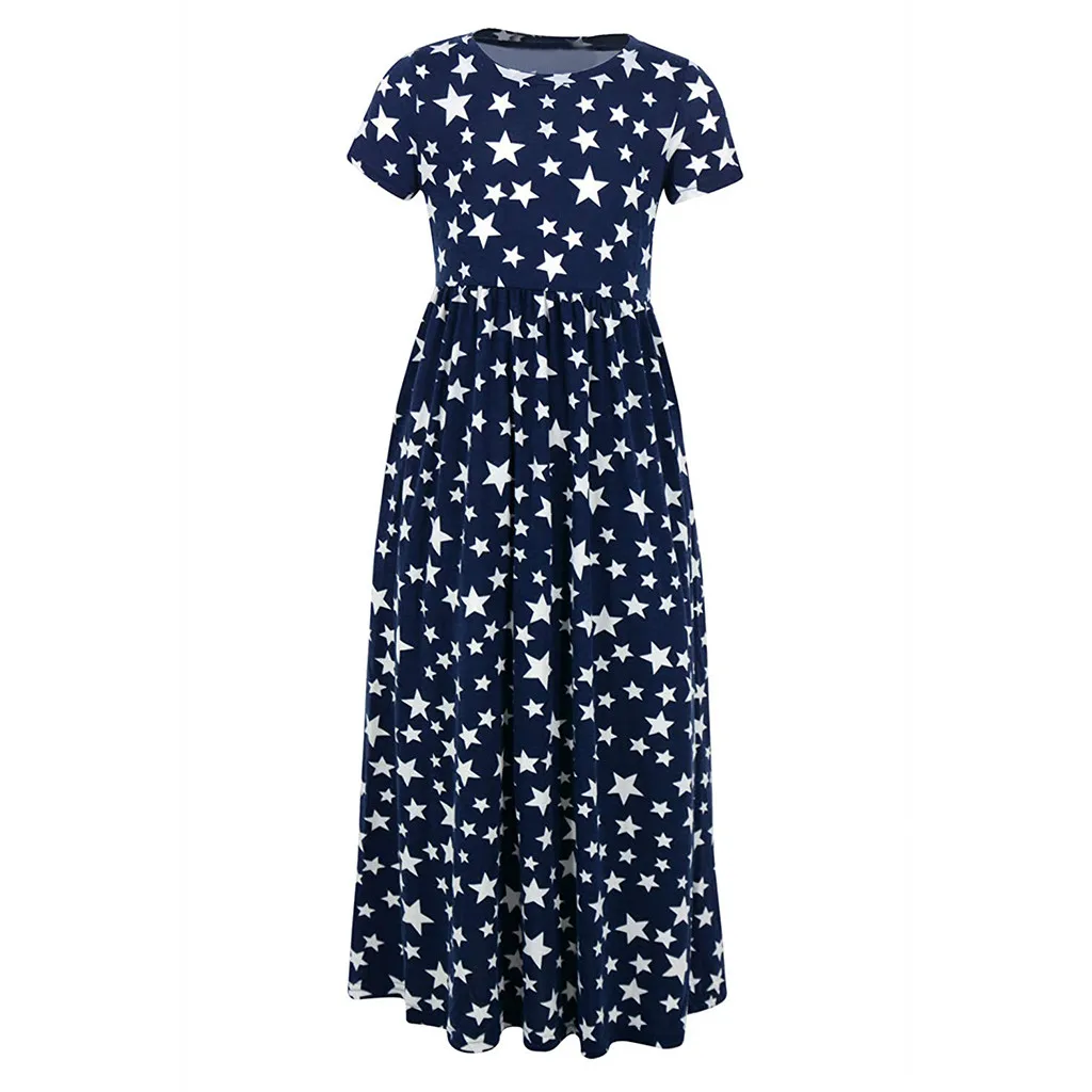 Платья для маленьких девочек с карманами и цветочным принтом и звездами; детская Праздничная пляжная одежда; платья