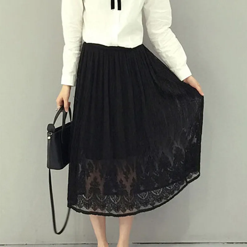 Женская винтажная юбка миди с принтом подсолнухов черная плиссированная