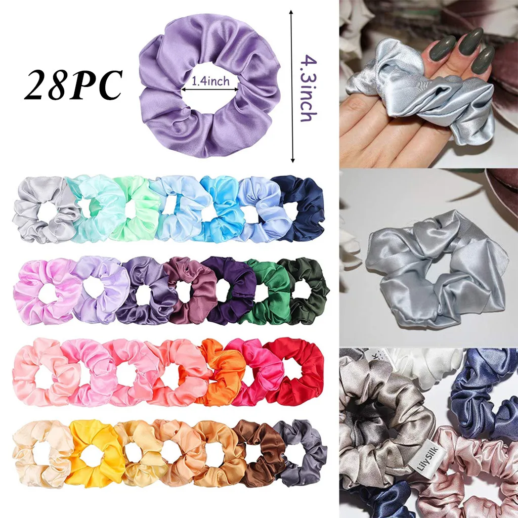 Модный стиль: 28 атласный, со складками в одном посылка, каждый сплошной цвет подходит для повязки на голову, чтобы удовлетворить ваши различные потребности.