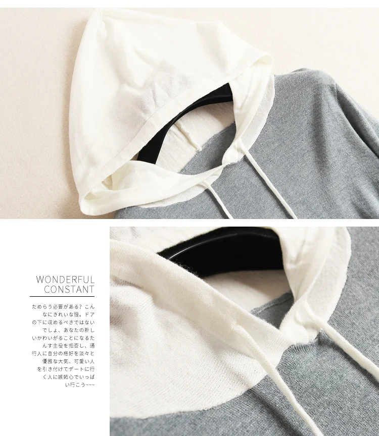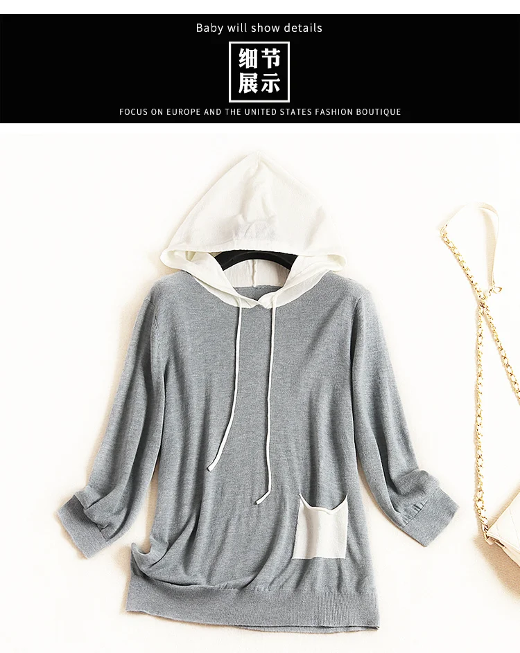 2019 Осенняя Повседневная модная темпераментная блузоны с капюшоном трикотажная куртка с рукавом три четверти женские пуловеры для девочек Топы женское платье