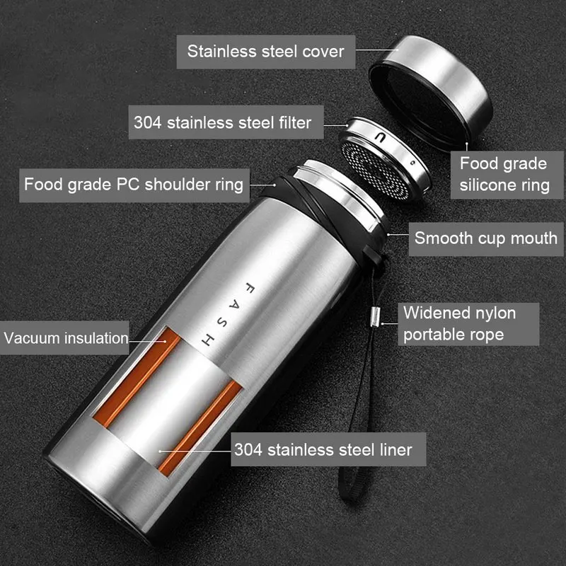<< Large capacity: Our slim 500ml/650ml/900ml/1100ml water bottle is great for kids and adults and can fit in most cup holders.