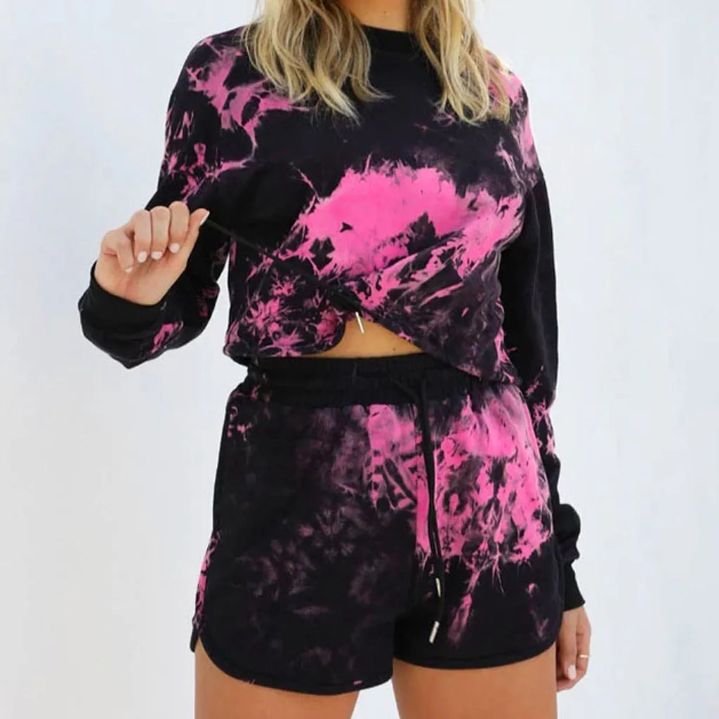 Женский повседневный комплект из двух предметов, с цветочным принтом, завязками и круглым вырезом