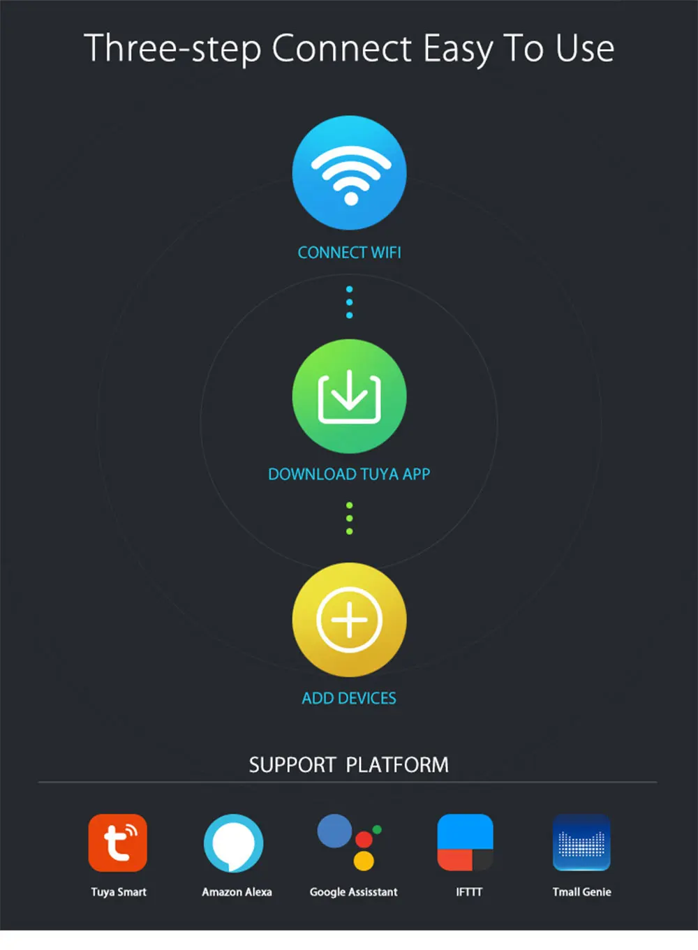 Введение: Наслаждайтесь своей умной жизнью: когда вы выходите из дома, он будет нажимать сообщение об уведомлении, когда дверь/Окно открывается или закрывается, так что вы можете открыть для себя охранника вовремя. Кроме того, вы можете поделиться устройством для членов вашей семьи и отслеживать история работы датчика. Совместимость с Alexa и Google Home: Просто используйте свой голос для управления подключенными устройствами Alexa или Google Home. Он также может выполнять автоматическое управление вместе с другими смарт-устройствами, которые совместимы с Умной жизнью или iftt. Удобно для вас обнаруживать ваши двери, окна, шкафы, ящики или в любом месте вы хотите уведомить, когда он открывается или закрыт. Простота установки: не требуется никаких сложных инструментов установки. Датчик может быть установлен с двухсторонней клейкой лентой или винтами (в комплекте) всего за несколько шагов, и загрузите приложение «Smart Life» из GooglePlay или app Store, чтобы добавить устройство для обнаружения состояния вашей двери/окна. Примечание: Этот датчик двери работает только с 2,4G Hz Wifi роутером. Широкий зазор обеспечивает до 1 см при закрытии двери/окна. Датчик двери работает с 2 батареями xAAA (батарея не включена). Пожалуйста, прочитайте шаги подключения по рекламе и руководство по эксплуатации, которое в упаковке сначала перед установкой датчика двери. Технические характеристики: 1. Обнаружение состояния открывания/закрытия двери/окна 2. Батарея: CR2 x 1 Время в режиме ожидания: 5 лет (батарея не включена) 3. Время использования: 1 год (триггер около 12 раз в день) 2 года (триггер около 6 раз в день), От 4 до 6 месяцев (триггер около 25 раз в день) 4. Резервный ток: 10uA Wifi расстояние: 45 м 5. Протокол: IEEE 802.11b/g/n 2,4 ГГц 6. Бесплатное приложение: smart life, также совместимо с приложением Tuyasmart, Один ключ настройки wifi или ap режим подключения с wifi. Совместимость с Alexa/Google Home Подключите устройство к Amazon Alexa Шаг 1: после того, как датчик двери был добавлен в приложение «smart life», откройте приложение alexa на вашем телефоне Шаг 2: Поиск умения «Умная жизнь» и включение Шаг: 3: Войдите в свой аккаунт «smat life» в alexa Шаг 4: перейдите в раздел alexa smart home и откройте для себя ваши устройства Шаг 5: Контрольное устройство Поддерживаются следующие голосовые команды: Alexa, дверь закрыта? Alexa, дверь закрыта? 2. Как управлять вашим устройством через Google Home Шаг 1: после добавления сенсора двери в приложение «smart life» Войдите в приложение google home и найдите домашний контроль Шаг 2: Управляйте учетной записью, чтобы найти приложение «smart life» Шаг 3: введите ваши аккаунты и пароль; Шаг 4: соглашайтесь с Умной жизнью для работы с google assistany Шаг 5: Контрольное устройство Теперь вы можете управлять устройствами с помощью голоса через продукт google home. Поддерживаются следующие голосовые команды: Хорошо, google, датчик двери заблокирован? Советы: Пожалуйста, убедитесь, что Подключите 2,4 ГГц wifi сеть, так как датчик не поддерживает 5 ГГц wifi Положение соединения для датчика и магнитного контакта: маленький треугольник на сенсоре и магнитный контакт должны быть в положении перекрытия