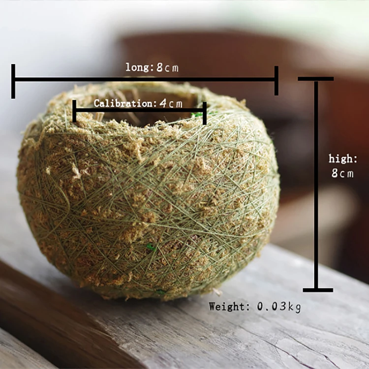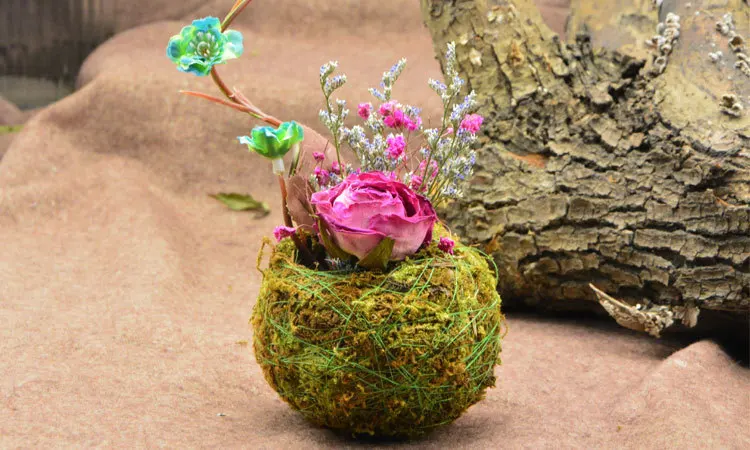 Made of dried moss, moss ball can be directly used as flower implement and planted with small plants. After soaking in water, it can be placed on shallow dishes. The exterior facade can be wrapped with large moss, small moss and creeping moss with pointed leaves to make lively moss jade balls.