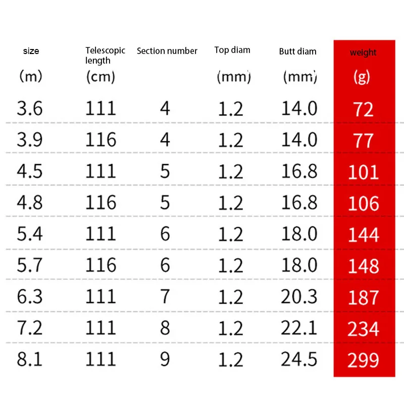 Основная информация о товаре: Тип удочки: удочка Материал: углерода Тональность: Жесткий Цвет: белый + черный Размер: 2,7, 3,0, 3,6, 3,9, 4,5, 4,8, 5,4, 6,3, 7,2, 5,7, (m) Характеристики: 4-9 стержень слегка M MH ML приманка