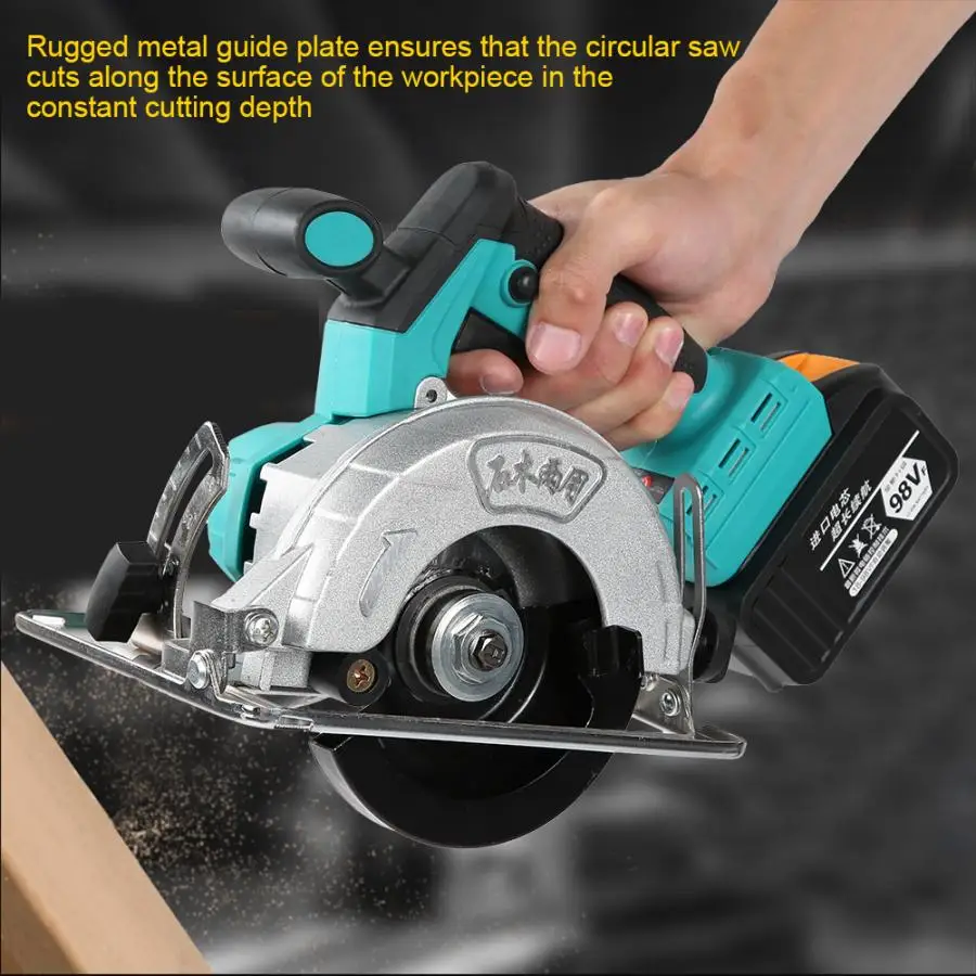 Встроенный улучшенный двигатель обеспечивает высокое вращение 3900 об/мин для гладкой и мощной резки. Прочная металлическая направляющая пластина гарантирует, что циркулярная пила режет по поверхности заготовки в постоянной глубине резания. Глубина резки может быть отрегулирована до 60 мм, СКОСА режет до 45 градусов. Мягкая резиновая ручка обеспечивает комфортную работу и лучший контроль, а также уменьшает усталость рук. Полукруглая Защитная крышка лучше защищает вас от пыли, щепы. Эта циркулярная пила может быть соединена с пылесосом для достижения безпылевой резки. Подходит для резки камня, дерева, керамической плитки и т. д.