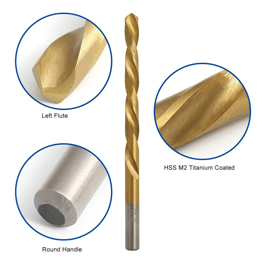 Эти левши сверла изготовлены из высококачественной высокоскоростной стали M2, с долговечным покрытием из нитрида титана. Эти сверла с 135 градусов крестообразно подточенная вершина дизайн, проникает 75% быстрее. Сверла с левой рукой вращаются против часовой стрелки, что полезно для извлечения сломанных винтов.