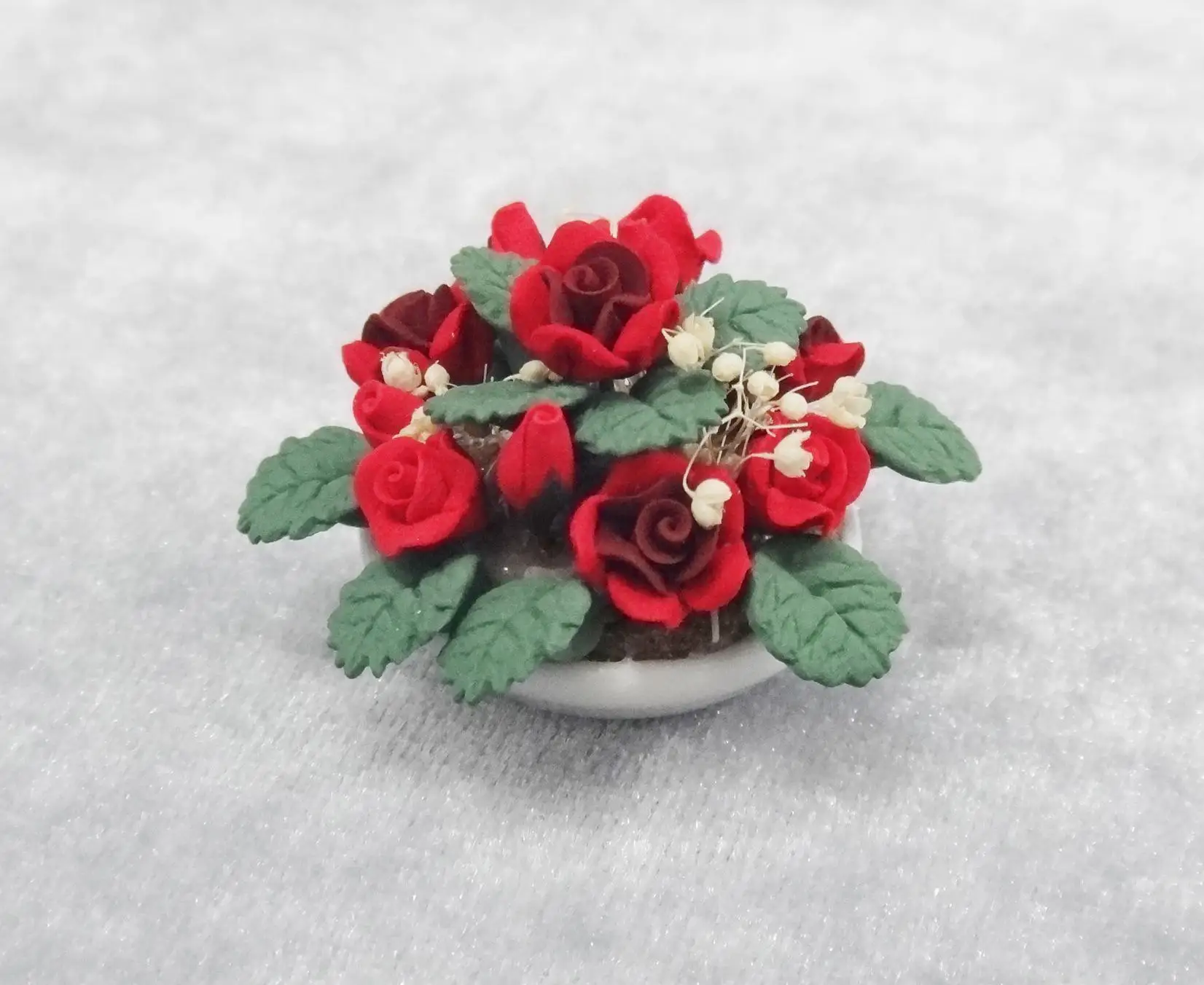 Искусственные растения Мини ручной работы глиняный завод модель цветок белый фарфор горшок красная роза gypsophila украшение сада 1 шт. FZ205