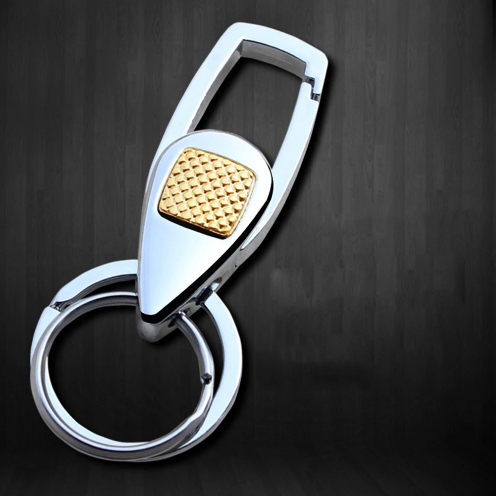 Stylish Men's Metal Double Ring Car Keychain Keyring Belt Bag Pendant Gift