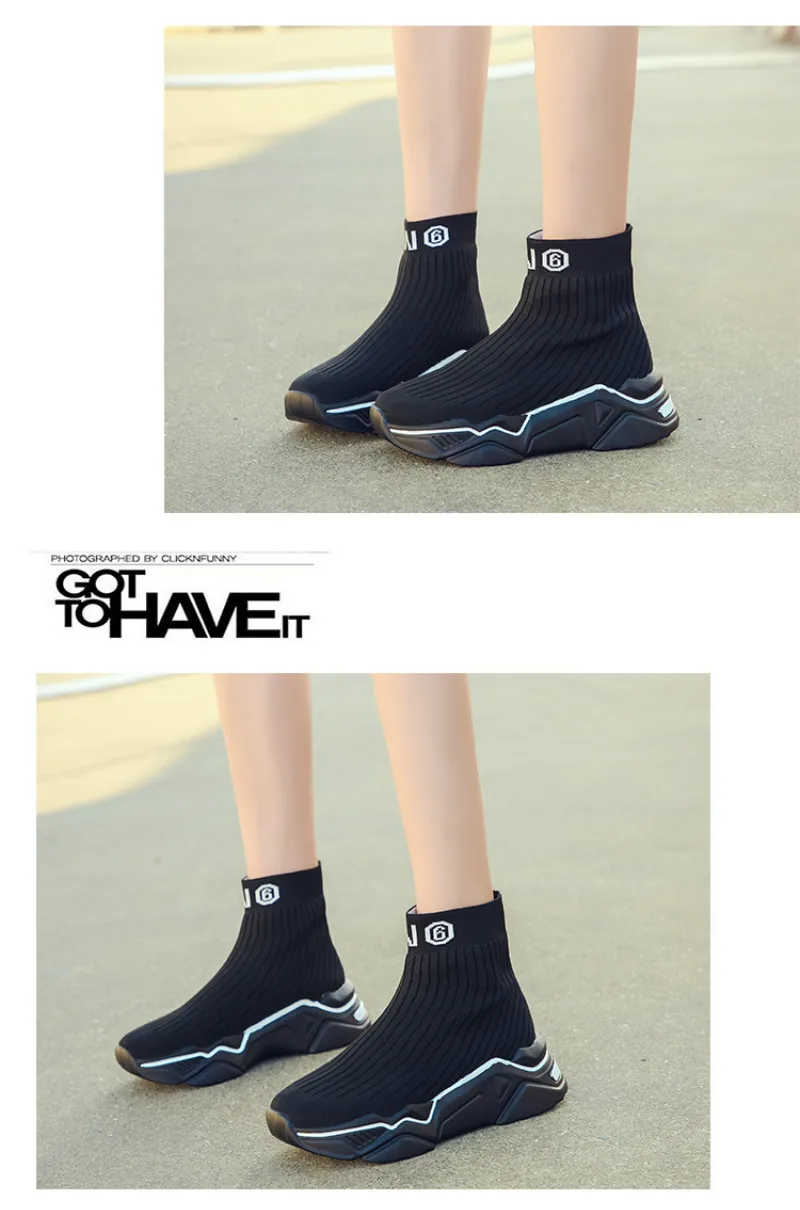 Носки; Обувь; Эластичные ботильоны; Женские кроссовки на плоской подошве; Повседневная Эластичная обувь на платформе; Zapatillas Mujer; HVT407