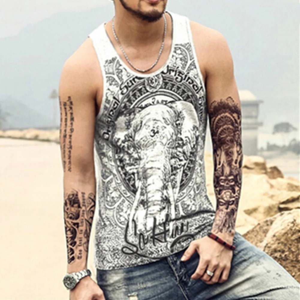 Винтажный Мужской летний жилет с принтом слона для бодибилдинга, свободная майка без рукавов