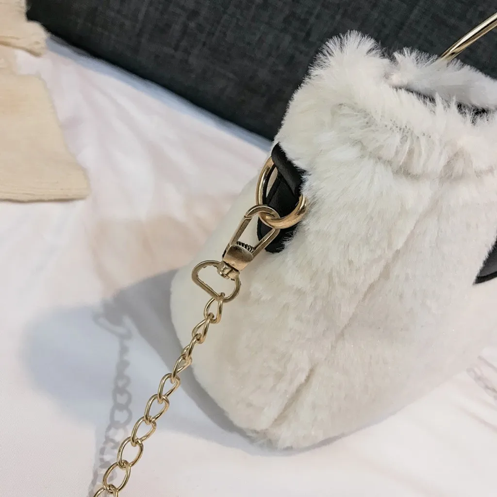 Модная женская простая Стильная однотонная плюшевая сумка через плечо сумка-мессенджер