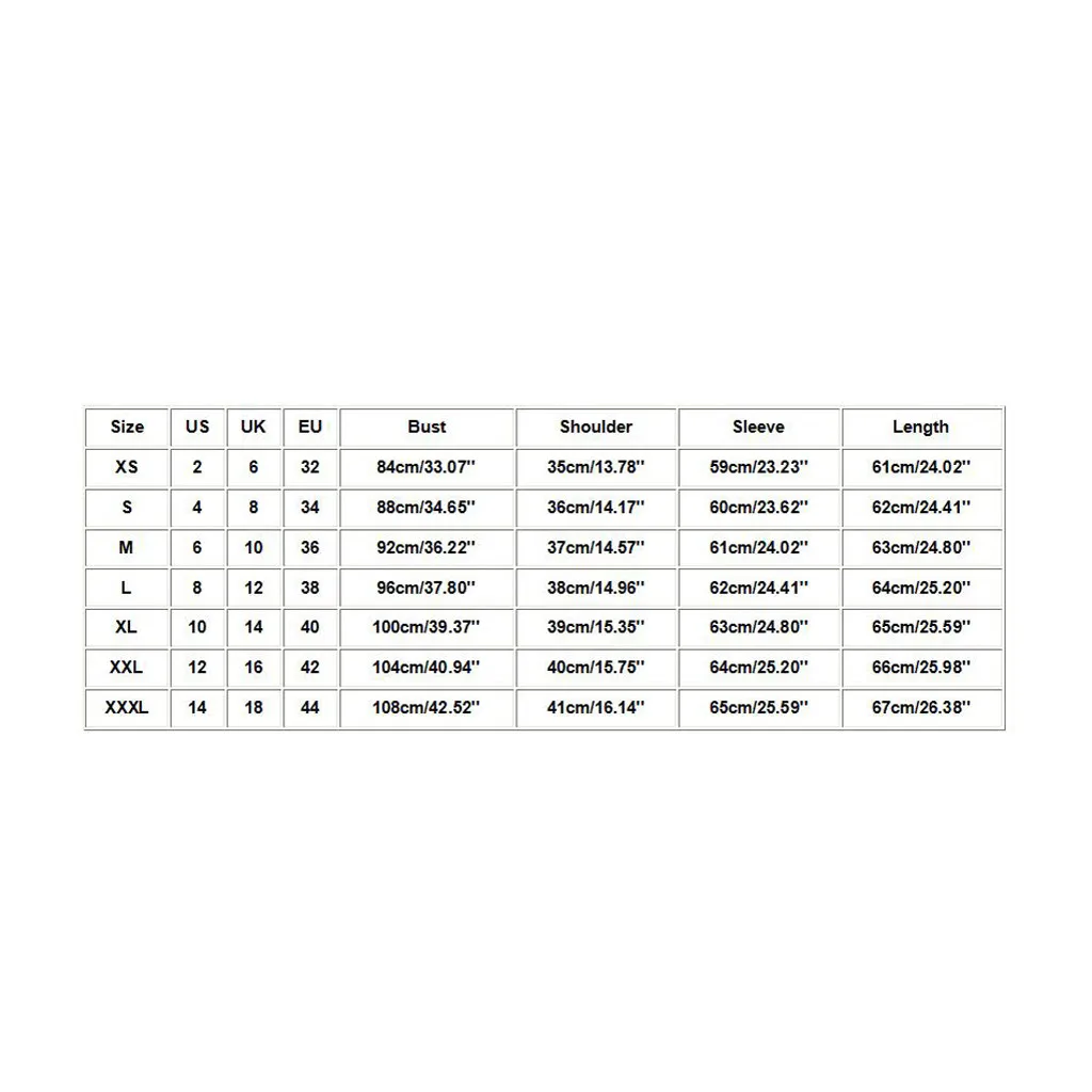 Что вы получаете: 1 шт. Женская курткаРазмерСвяжитесь с намиВеликобританияЕСОбхват грудиСумка на плечоРукаваДлинаXS263284 см/33,07''35 см/13,78''59 см/23,23''61 см/24,02''S483488 см/34,65''36 см/14,17''60 см/23,62''62 см/24,41''М6103692 см/36,22''37 см/14,57''61 см/24,02''63 см/24,80''L8123896 см/37,80''38 см/14,96''62 см/24,41''Высота голенища 64 см; 25,20''XL101440100 см/39,37''39 см/15,35''63 см/24,80''65 см/25,59''XXL121642104 см/40,94''40 см/15,75''Высота голенища 64 см; 25,20''66 см/25,98''XХХL141844108 см/42,52''41 см/16,14''65 см/25,59''67 см/26,38''
