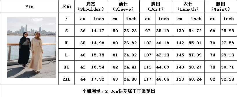 Таблица размеров (ручное измерение, погрешность 1-2 см): Возможна погрешность в 1-2 см из-за ручного измерения Фотографии и тонкая разница в цвете-это нормально, спасибо за понимание Примечание: 1 дюйм = 2,54 см, это китайский Размер, поэтому при заказе, пожалуйста, ознакомьтесь с таблицей размеров! Примечание: этот стиль без хиджаба, хиджаб необходимо приобретать отдельно