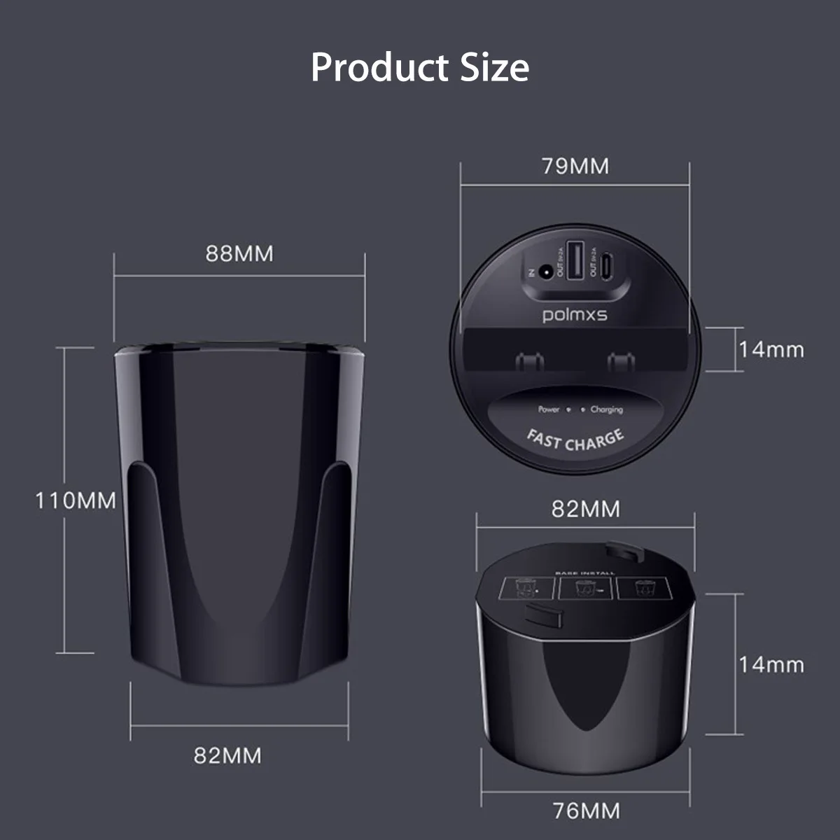 -Чашка для беспроводного зарядного устройства подходит только для телефонов, ширина которых меньше 78 мм, если над этим, телефон не может быть помещен в чашку.