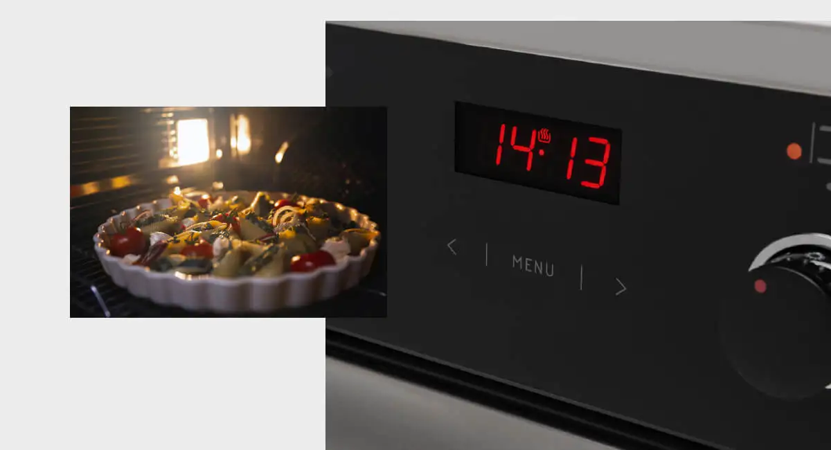 Сенсорный цифровой таймер работает в двух режимах. Он контролирует общее время приготовления и задает время выключения духового шкафа. В режиме отложенного старта духовой шкаф может включиться и выключиться без вашего участия — достаточно лишь установить время окончания и общее время приготовления. Эта функция особенно полезна в праздничные дни, когда нужно успеть сделать большое количество дел.