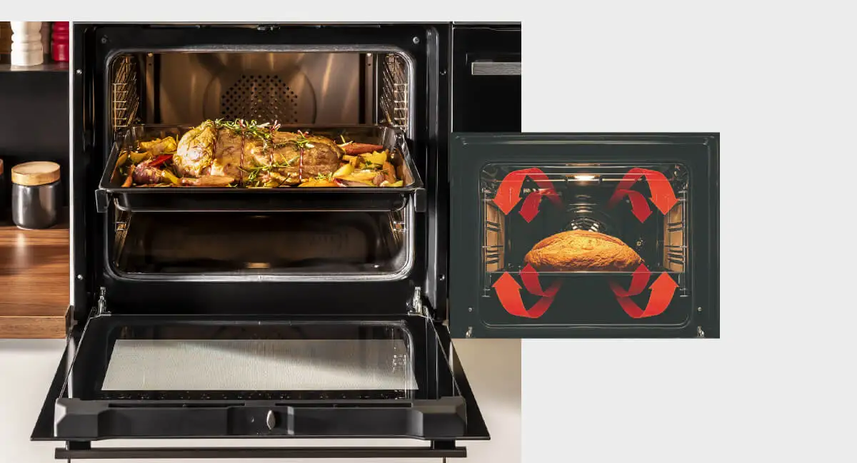 Функция конвекции обеспечивает улучшенное распределение жара и постоянную циркуляцию воздуха внутри духового шкафа. Это сокращает время приготовления, а также позволяет добиться более равномерного пропекания и золотистой корочки. Кроме того, с использованием конвекции вы можете готовить сразу на нескольких уровнях одновременно.