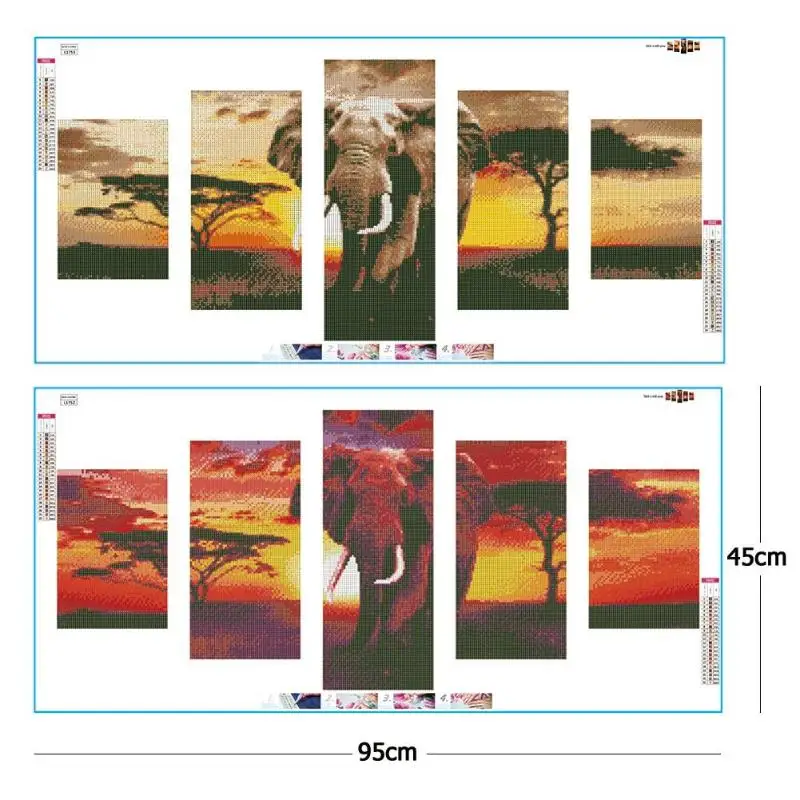 5 шт. 5D DIY полная дрель Алмазная картина слон вышивка крестиком набор из 5 фотографий набор для настенного искусства рукоделие домашний Декор подарокОсобенности:Если вы хотите сделать свой дом более красивым и красочным, алмазная картина поможет вам добавить веселое украшение.DIY живопись, оригинальность, живопись и смолы блестки, смолы блестки ослепительно, уникальный блеск, сияющий светильник, является самым популярным DIY ювелирных изделий в настоящее время.Красочная Алмазная картина украсит ваш дом.Идеально Украсьте вашу гостиную или спальню, чтобы соответствовать и создать различные стили, мы уверены, что вам понравится.Характеристики:Материал: стразы + холстТип проекта: 5D алмазная живопись (полная дрель)Цвет: как показаноРазмер холста: прибл. 95X45 см/37,4X17,72 "(1 см = 0,39 дюйма)Точечное сверло: прибл. 90X40 см/35,43X15,75 "(1 см = 0,39 дюйма)Пространство: гостиная/спальня/класс/входТип: L1752/L1753