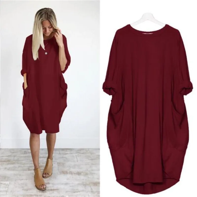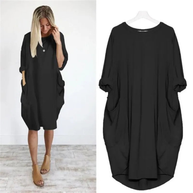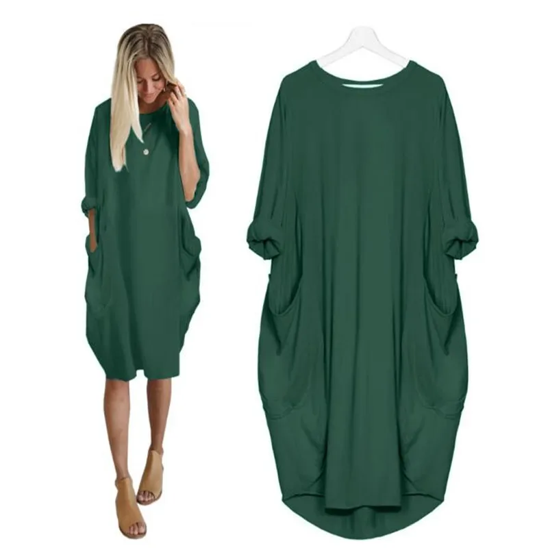 Повседневное длинное платье-топ с вырезом лодочкой для девочек, Женские Модные осенние женские платья, свободное платье с карманами