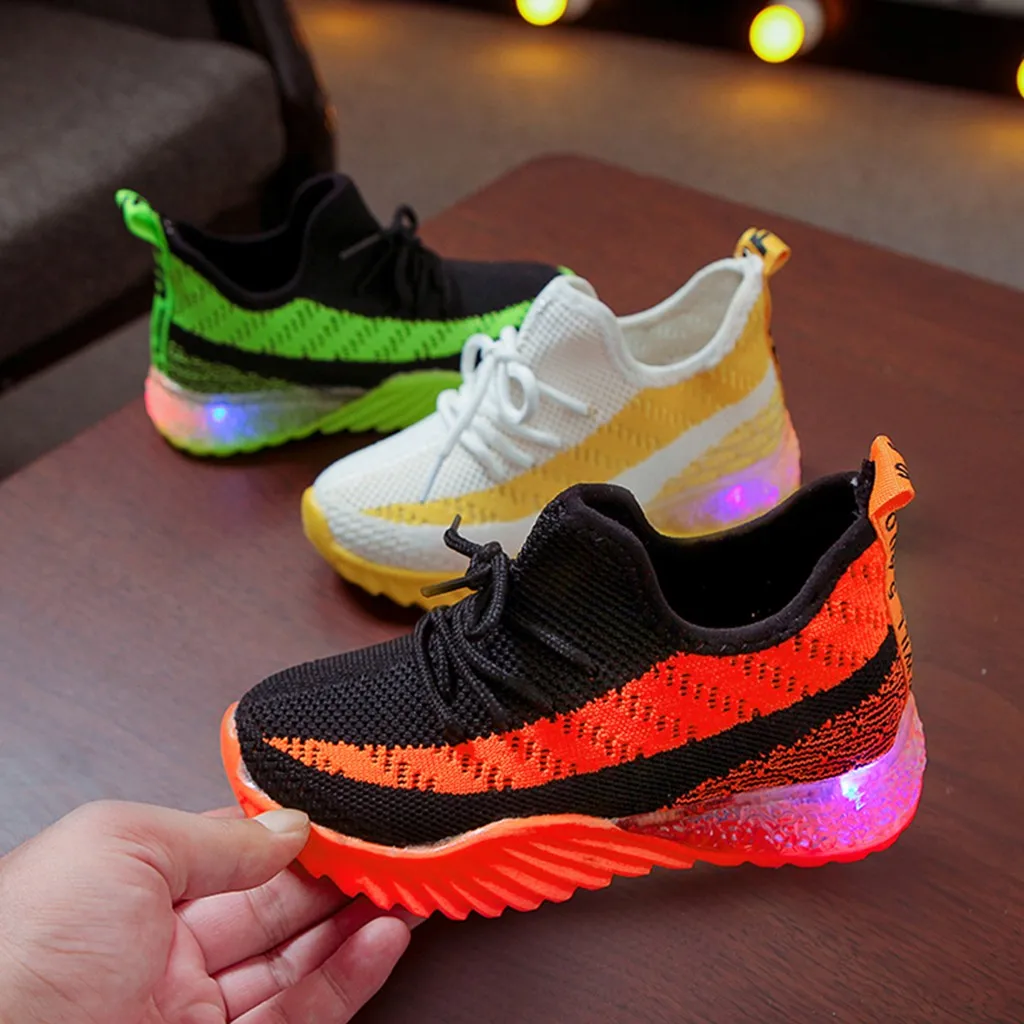 Детские спортивные кроссовки ярких цветов со светодиодной подсветкой для мальчиков и девочек