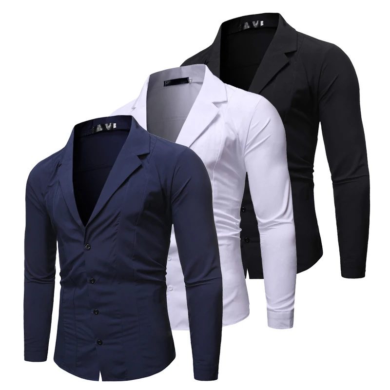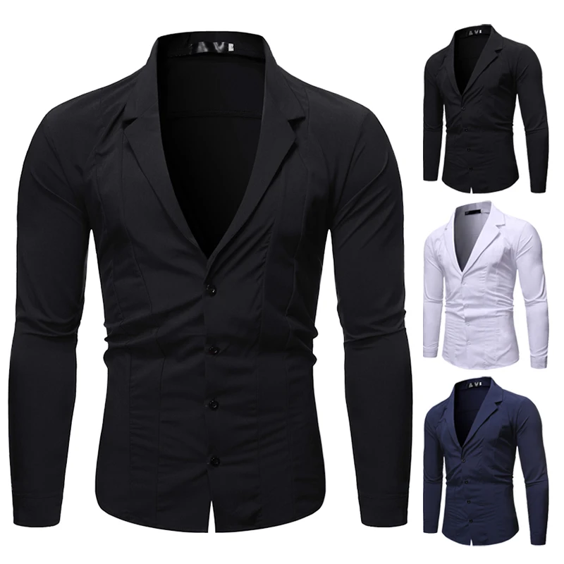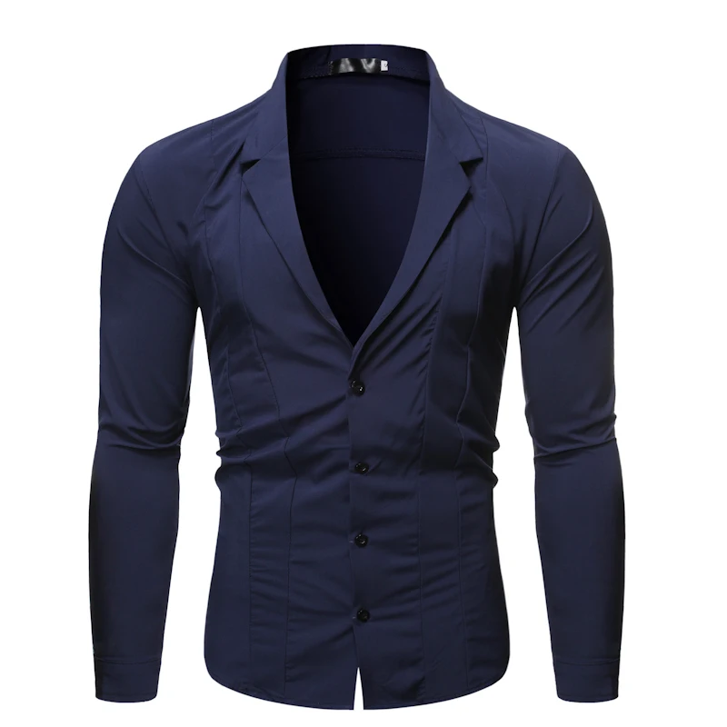 * Описание товара:Мужская Повседневная тонкая рубашка; длинный рукав; Пуговицы Топы; плюс размер; Блейзер костюм воротник; сплошной цвет