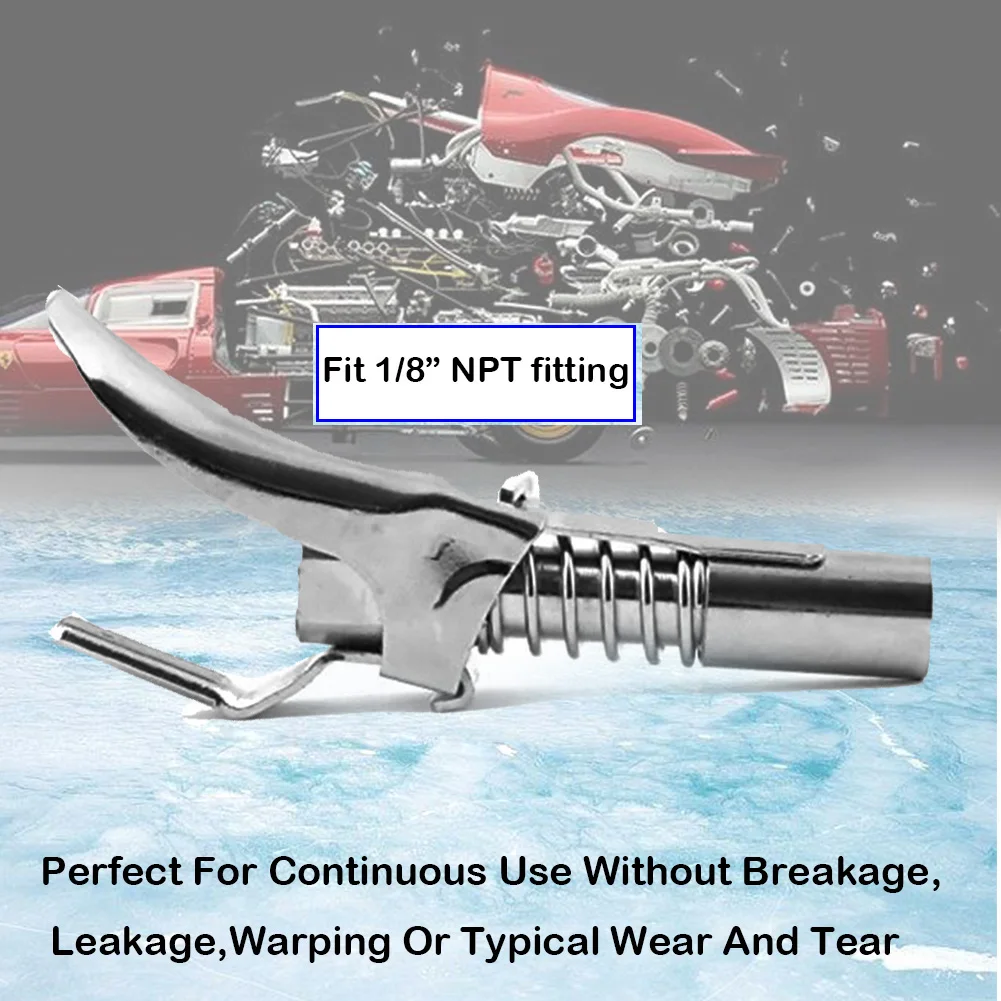 1. Двойная ручка удобна в использовании, и она не повредит трубу. Уплотнительное кольцо сопла изготовлено из конической резины, чтобы убедиться, что соединение не протекает, очень герметично и долговечно. 2. Работает со всеми типами смазочных пистолетов-пневматическими, ручными и электрическими. 3. Подходит для 1/8 "NPT fitting, все SAE и метрические Zerk муфты фитинги. 4. Не нужно держать во время смазки, блокировки и освобождения обеих рук, чтобы управлять смазочным пистолетом, легко clip-off.Maximum рабочее давление 10,000PSI (690 бар). 5. Идеально подходит для непрерывного использования без поломки, утечки, деформации или типичного износа. Описание: смазка идет внутрь, а не на машине. Больше никаких смазок повсюду. Концы отходов. Концы отсутствием беспорядка. Концы смазки разочарование. Подходит для всех смазочных пистолетов-1/8 "NPT fitting. Подходит для всех SAE и метрических Zerk фитингов. Просто замените существующую муфту, нажмите оранжевую кнопку справа, чтобы купить. Давление заблокирован? Никаких проблем. Легко освобождает от засоренных фитингов даже при экстремальных давлениях. Список упаковочных коробок: Смазка муфта * 1