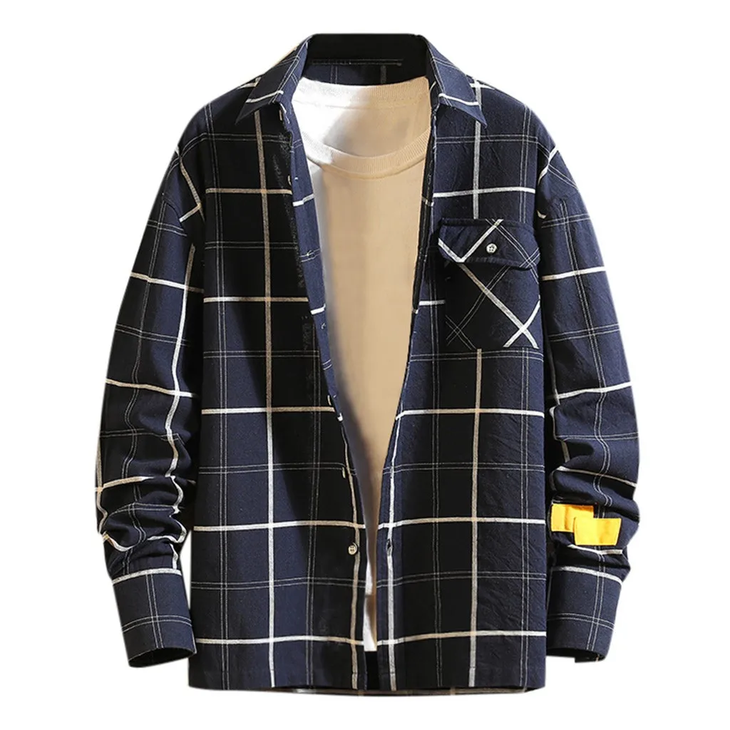 Мужская повседневная осенне-зимняя повседневная рубашка в клетку с длинным рукавом, верхняя одежда, пальто