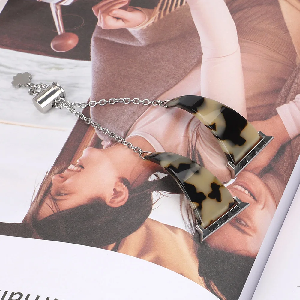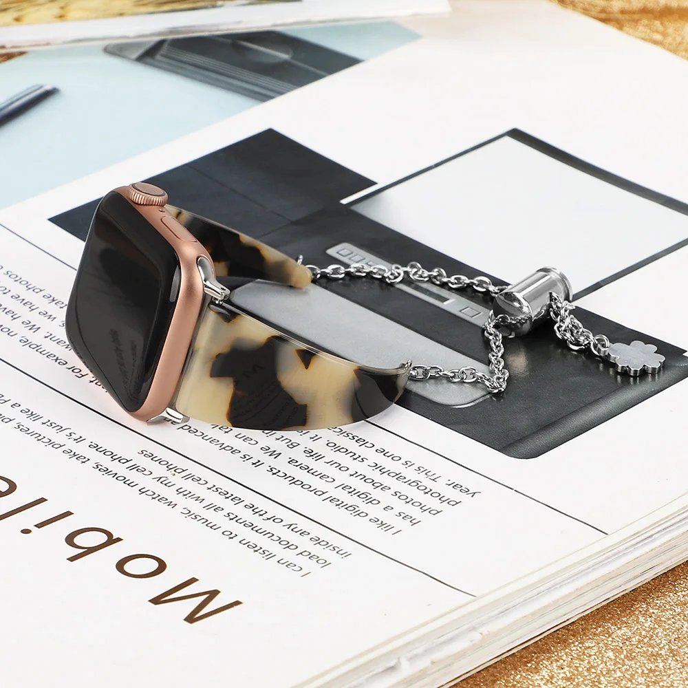 Новый дизайн Женская подвеска из смолы браслет для наручных часов Apple Watch, версии 5 4 3 2 1 сумка на ремешке-цепочке для наручных часов iWatch, 40/44 мм, 38 мм/42 мм ювелирный ремень