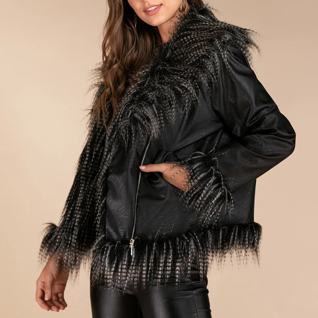 Женская Повседневная теплая кожаная куртка с длинным рукавом, верхняя одежда, верхняя одежда, блузка