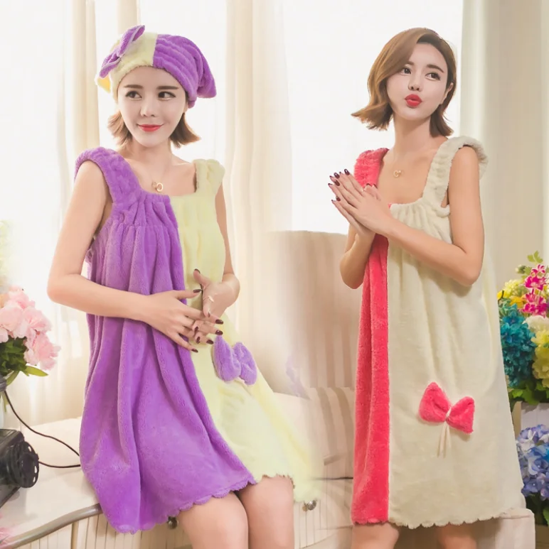Банная юбка кораллового бархата, впитывающее полотенце, комплект с повязкой на голову, Женская банная юбка