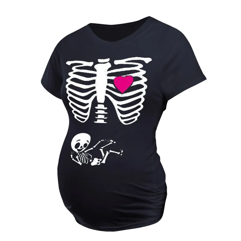 Женская футболка с коротким рукавом и принтом скелета для беременных повседневный комплект одежды