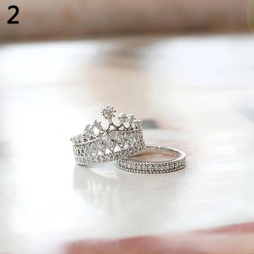Роскошный дизайн набор колец Женская мода Королева Корона узор кольцо стразы из двух частей кольца ювелирные изделия Новинка femme