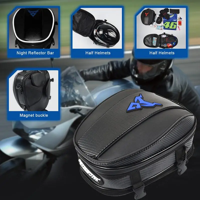 1. Многофункциональный рюкзак из углеродного волокна, может быть помещен наполовину шлем, поставляется с ночной отражающей полоской, может использоваться в качестве топливного бака, заднего сиденья, сумки через плечо;