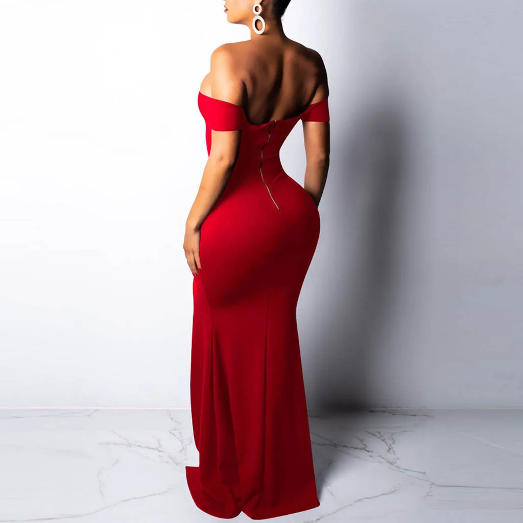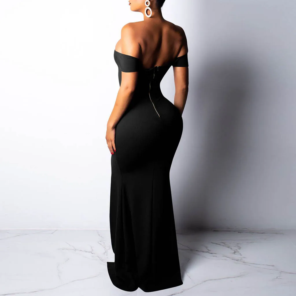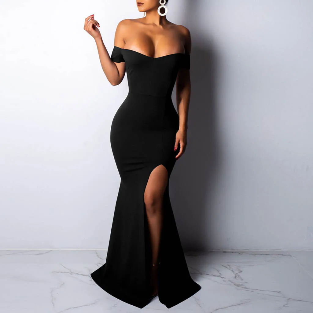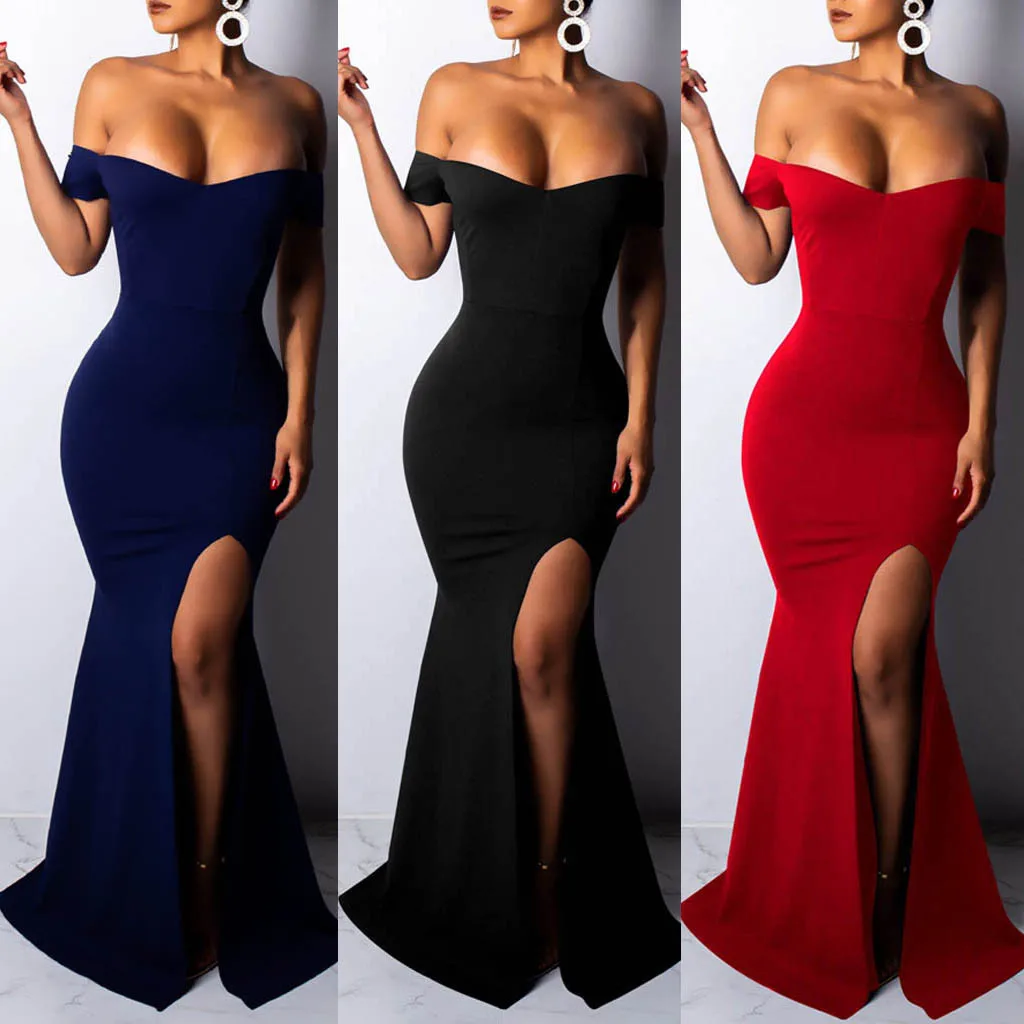 Женское Сексуальное Платье макси с открытыми плечами без рукавов длинное платье с разрезами Roupa Feminina 2019 Осень новинка горячая Распродажа YE