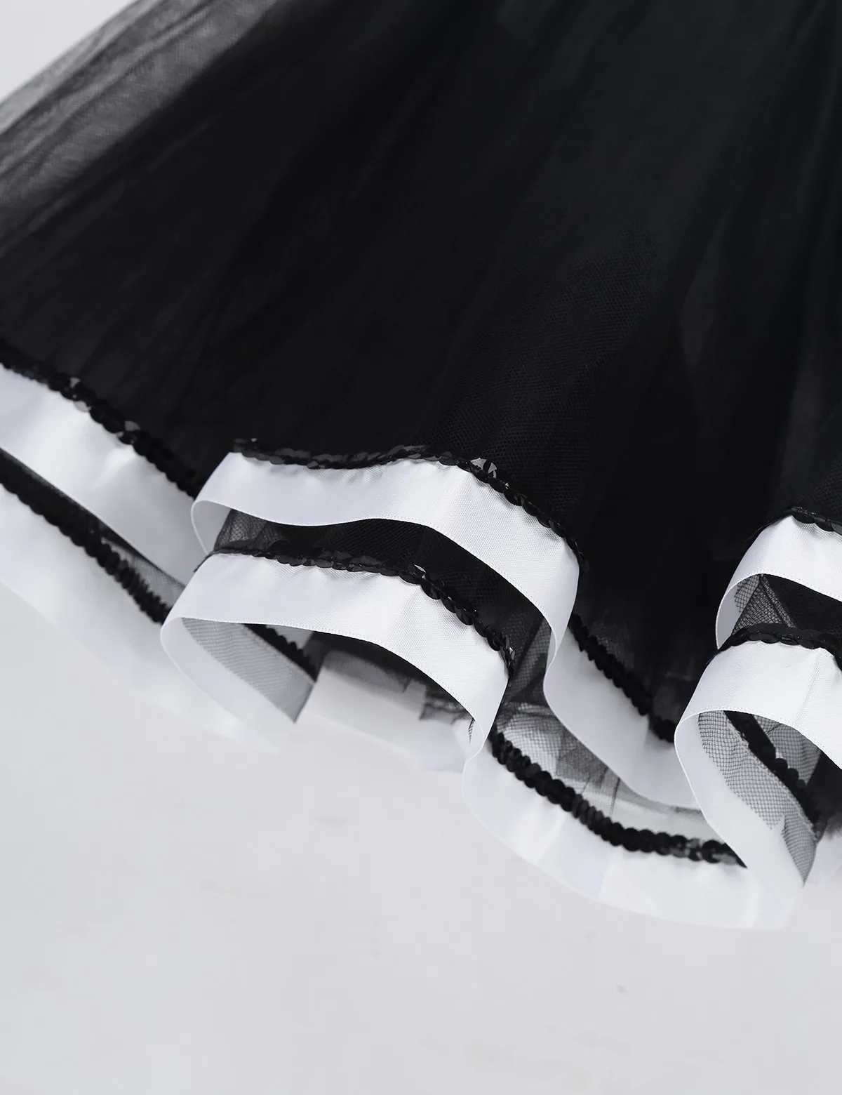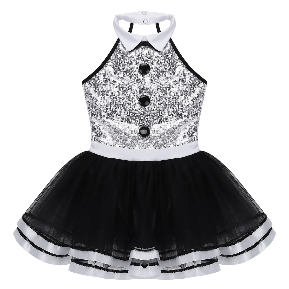 С ремешками и пряжками на спине. 3-Слойная Юбка из сетчатой ткани крепятся вокруг талии. 2 верхних сетчатых слоя с лентой. Стильная и красивая Одежда для танцев для вашей девочки.