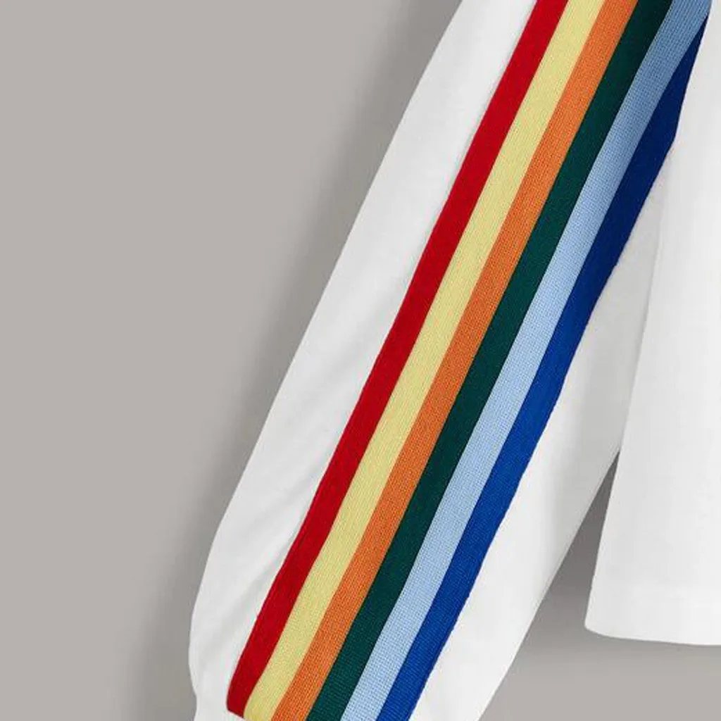 Хит продаж, женские толстовки с радужными полосками, Простые Топы, модные женские толстовки больших размеров, осенняя одежда Harajuku, уличная одежда