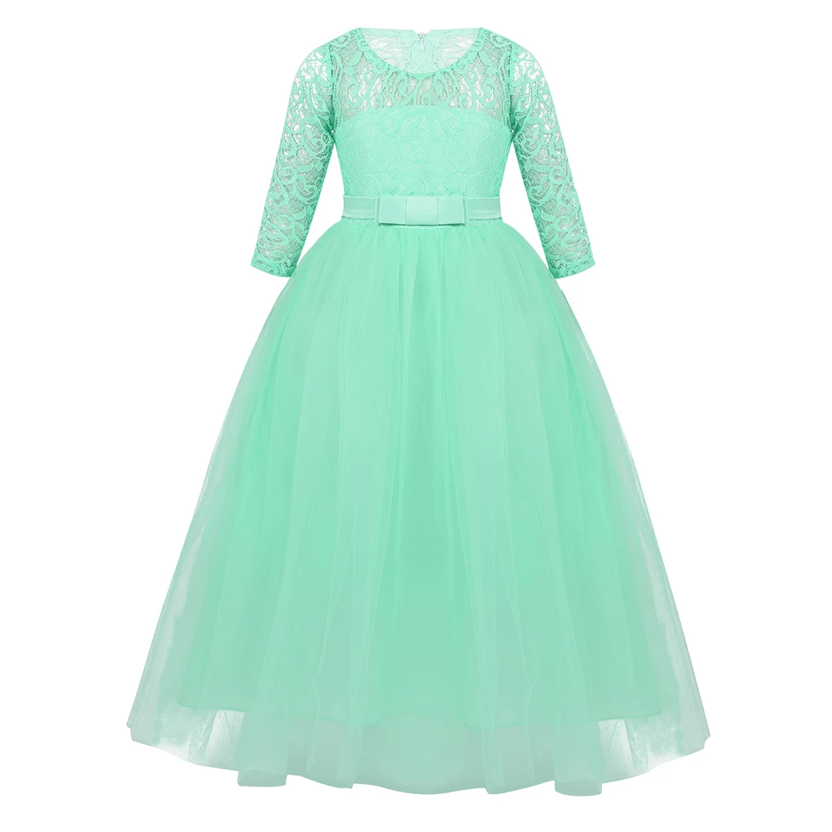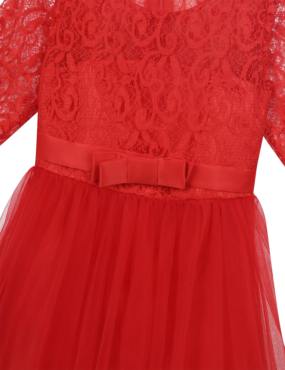 3/4 рукава, круглый вырез. Изящный кружевной топ с цветочной вышивкой. Прелестный бант на талии спереди, завязка сзади. Скрытая молния сзади.