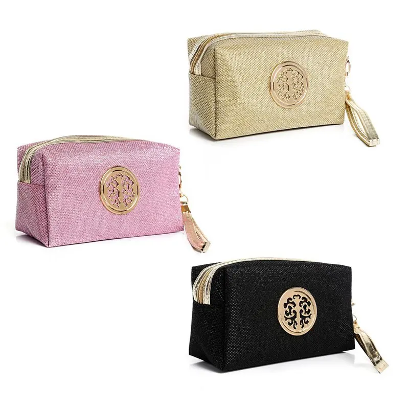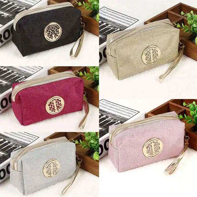 Черная модная дамская косметичка сплошной цвет хранения Путешествия Сумочка для косметики с блестками косметичка; сумка